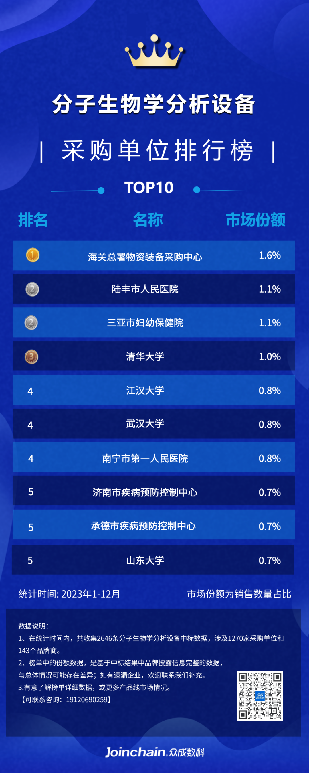 图2:2023年分子生物学分析设备采购单位排行榜