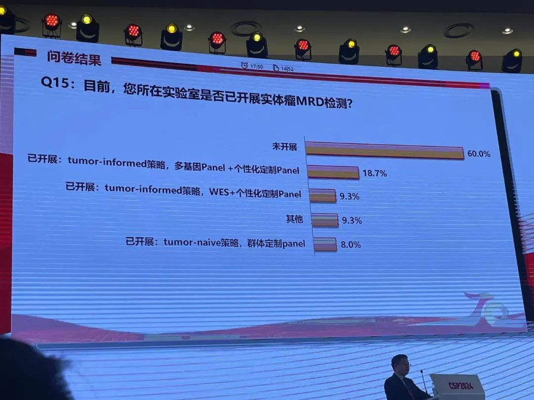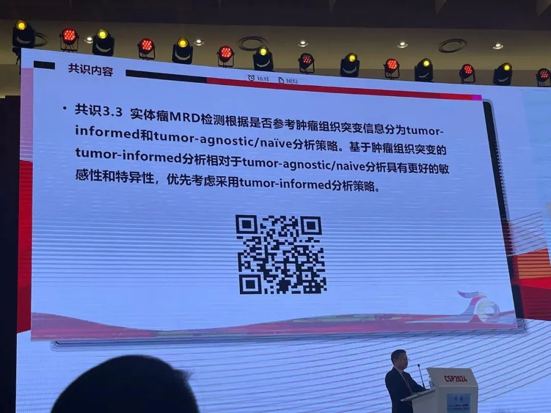 最终共识的“定稿”应该和这次展示的PPT不会有太大的差异 3月31日,2024全国病理年会的最后一天,高潮来了。 全部的现场照片我们放在文末,感谢LLL小姐姐的无私分享,点个赞 对于共识的技术性解读,留给叨哥(公众号:小李叨叨)等专家们。作为一个“纯学术”的人,我关注的点比较商务,简称: “下一步,哪里有刚需?”——有刚需,就有市场;有市场,就有机会。 所以我挑了几张我感兴趣的,简单水几句: 1. 什么癌种会是MRD的“第一波浪潮” 预后价值:结直肠癌、肺癌、乳腺癌、膀胱癌 治疗决策:结直肠癌、肺癌 我个人的理解,当前:治疗决策>预后价值;如果后续预后证明了能提前干预(下图是Natera正在开展的RCT),则可能从“>”变成“=”。 2. Tumor-informed和Tumor-agnostic的选择? 至少目前比较清晰了,有条件的情况下,选tumor-informed。 而同为tumor-informed路线,WES和大Panel作为基线有差异吗?——至少,没有明显差异。 这给MRD落地院内检测降低了一大截门槛。 3. MRD落地院内检测,是蓝海还是红海? 从调研结果看,这是妥妥的大蓝海:60%未开展,而开展了tumor-informed路线MRD院内检测的仅有28%。 大家一直关心什么是“新的增长点”——方向来了。 结合上述三点,今年的增长点从哪里找,很清晰了吧。 但,我们还是要再不厌其烦的说一下昨天的观点: