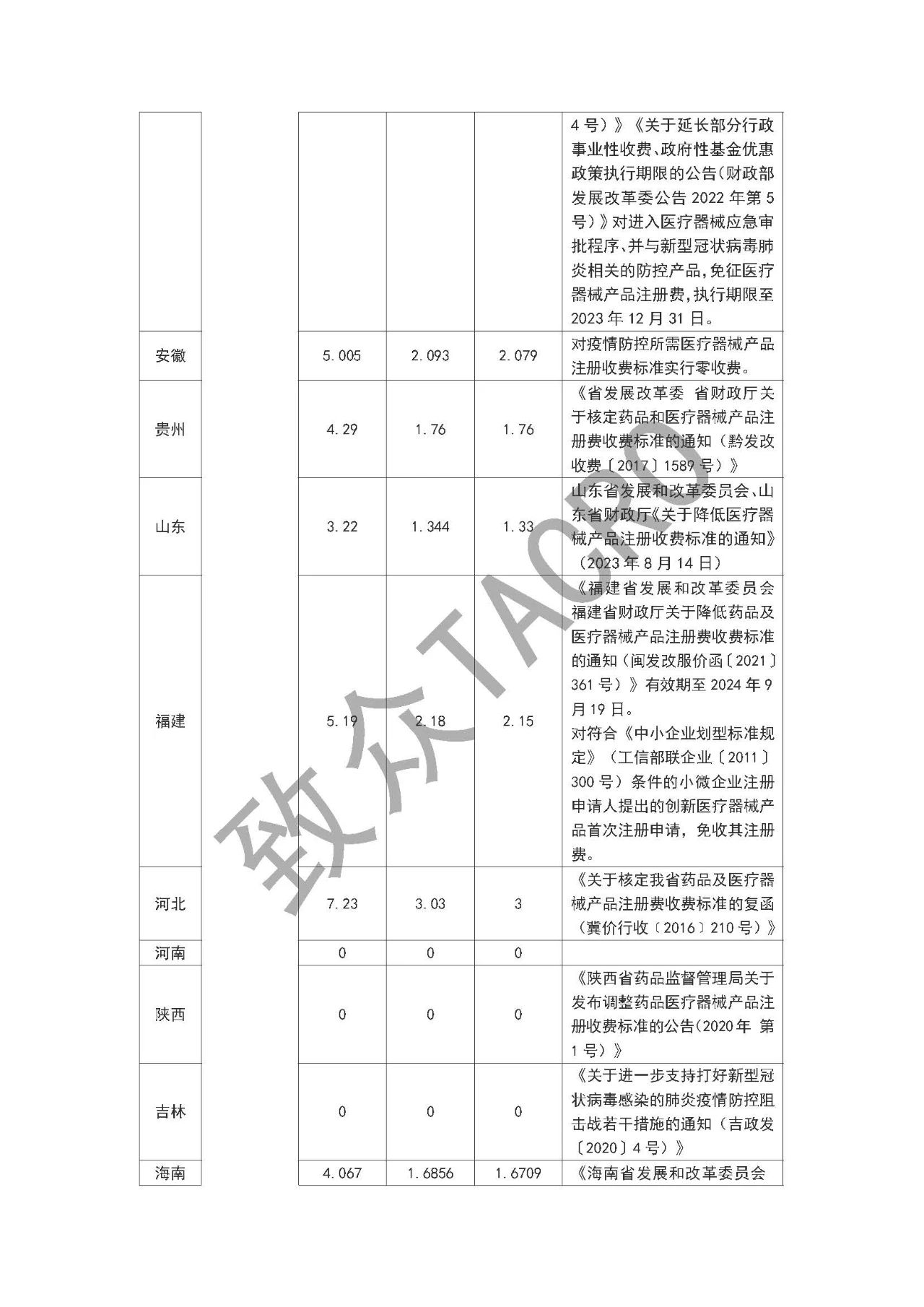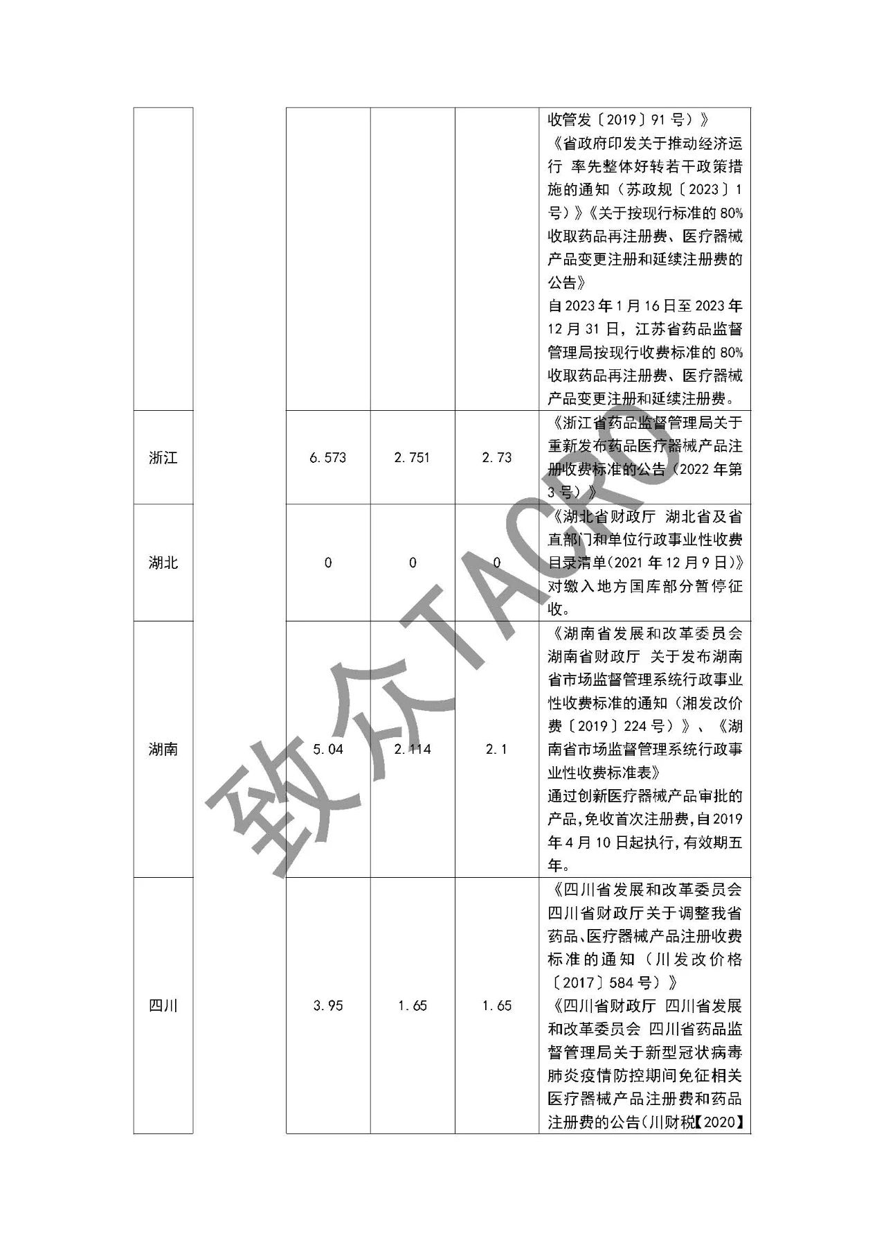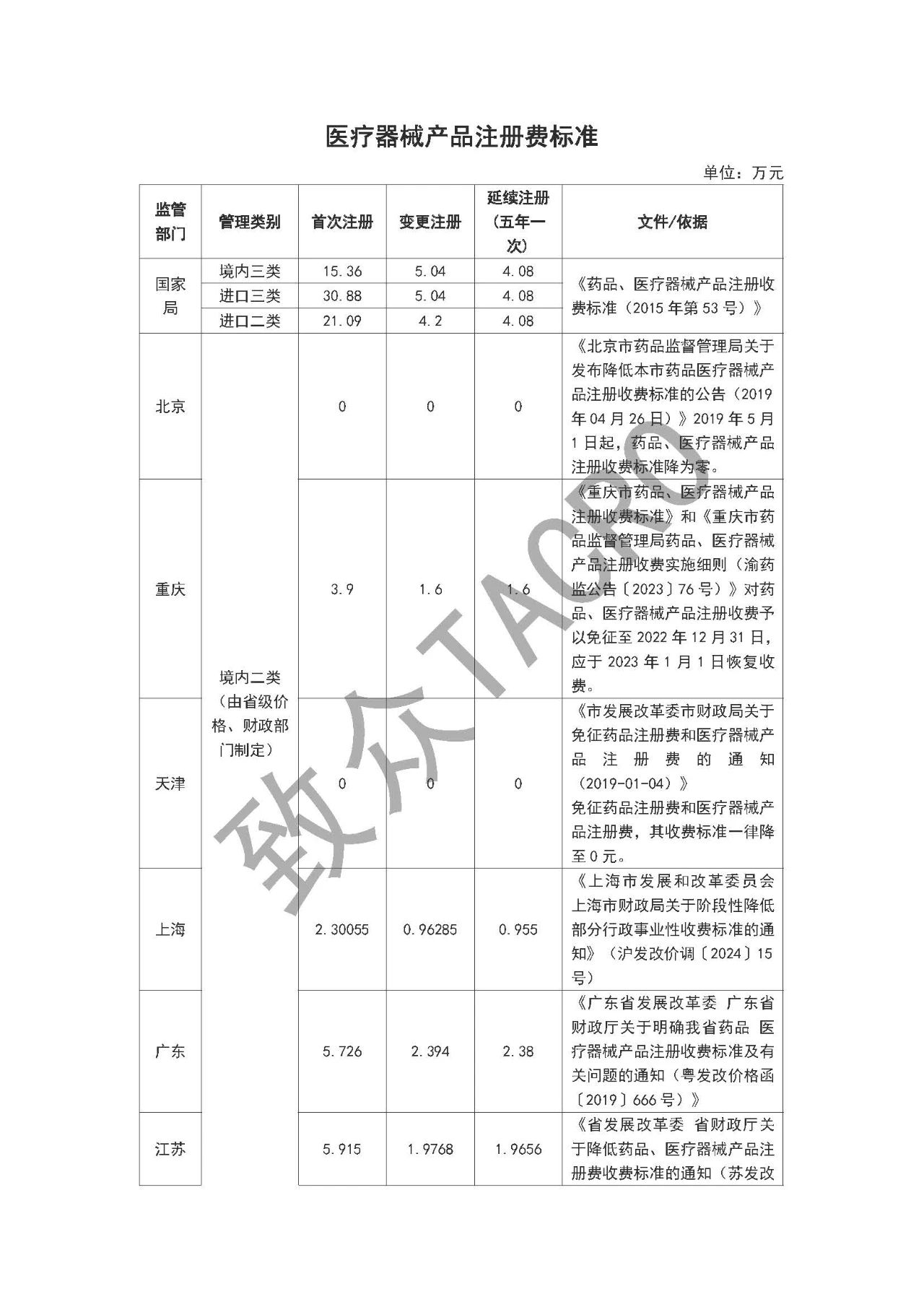 注:1.医疗器械产品注册收费按《医疗器械注册与备案管理办法》、《体外诊断试剂注册与备案管理办法》确定的注册单元计收。 2.《医疗器械注册与备案管理办法》、《体外诊断试剂注册与备案管理办法》中属于变更备案申请的,不收取变更注册费。 3.以受理通知书上落款日期为准,受理通知书上落款日期标注为2024年4月1日(含4月1日)以后,按调整后标准收费。 附件2 上海市药品、医疗器械产品注册收费实施细则 依据《医疗器械监督管理条例》《药品注册管理办法》《医疗器械注册与备案管理办法》《体外诊断试剂注册与备案管理办法》《关于本市药品及医疗器械产品注册收费管理的通知》等有关规定,制定本实施细则。 一、注册费缴费程序 注册申请人向上海市药品监督管理部门提出申请,上海市药品监督管理部门受理后按财政部门非税收入管理规定出具《行政许可项目缴费通知书》或系统生成《电子缴款书》,注册申请人通过银行直接缴款入国库。 二、注册费缴费说明 1.药品再注册申请人在申报系统中生成《电子缴款书》后按照要求缴纳注册费,上海市药品监督管理部门通过上海市药品监管行政审批系统掌握注册申请人缴纳情况,未按要求缴纳的,其注册程序自行中止。 2.按医疗器械管理的体外诊断试剂的注册收费适用本实施细则。 3.《医疗器械注册与备案管理办法》《体外诊断试剂注册与备案管理办法》中属于变更备案申请的,不收取变更注册费。 4.医疗器械注册申请人应当在收到《行政许可项目缴费通知书》后15个工作日内按照要求缴纳注册费,上海市药品监督管理部门通过非税收入管理平台掌握注册申请人缴纳情况,未按要求缴纳的,其注册程序自行终止。 5.注册申请受理后,申请人主动提出撤回注册申请的,或上海市药品监督管理部门依法做出不予许可决定的,已缴纳的注册费不予退回。再次提出注册申请的,应当重新缴纳费用。 三、小微企业优惠政策 对符合《中小企业划型标准规定》(工信部联企业〔2011〕300号)条件的小微企业注册申请人提出的创新医疗器械产品首次注册申请,免收其注册费。创新医疗器械产品是指根据《上海市第二类创新医疗器械特别审查程序》同意纳入第二类创新医疗器械的产品。 四、其他问题说明 对于符合退费条件的,由申请人向受理部门提交退费申请、汇款凭据、《非税收入一般缴款书》等有关材料,于每年4月底或10月底前按规定办理退费手续。 |