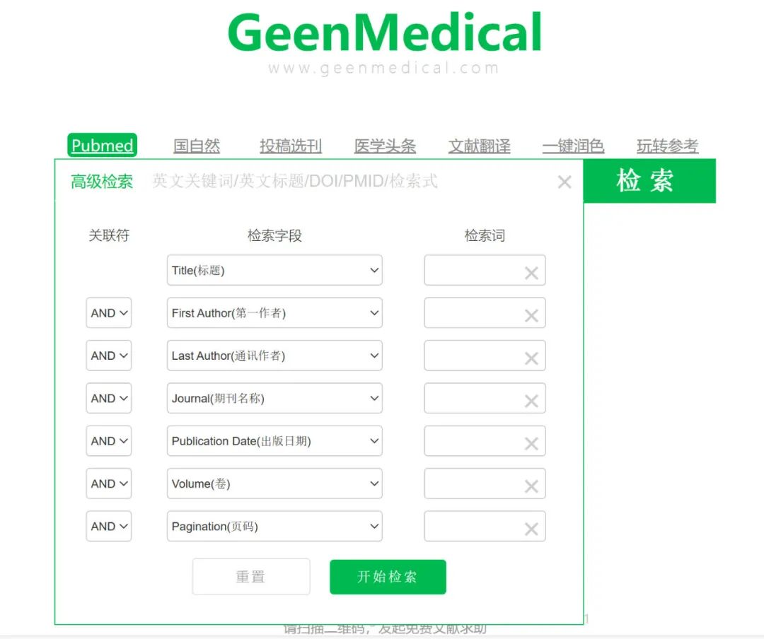 # 文献型数据库资料 一、PubMed 网址:https://pubmed.ncbi.nlm.nih.gov/advanced/ PubMed是美国国家医学图书馆(NLM)所属的国家生物技术信息中心(NCBI)于1997年开发的生物医学检索系统。 其数据主要来源有:MEDLINE、OLDMEDLINE、Record in process、Record supplied by publisher等。 三、GeenMedical 根哥学术 网址:http://www.greenmedical.com