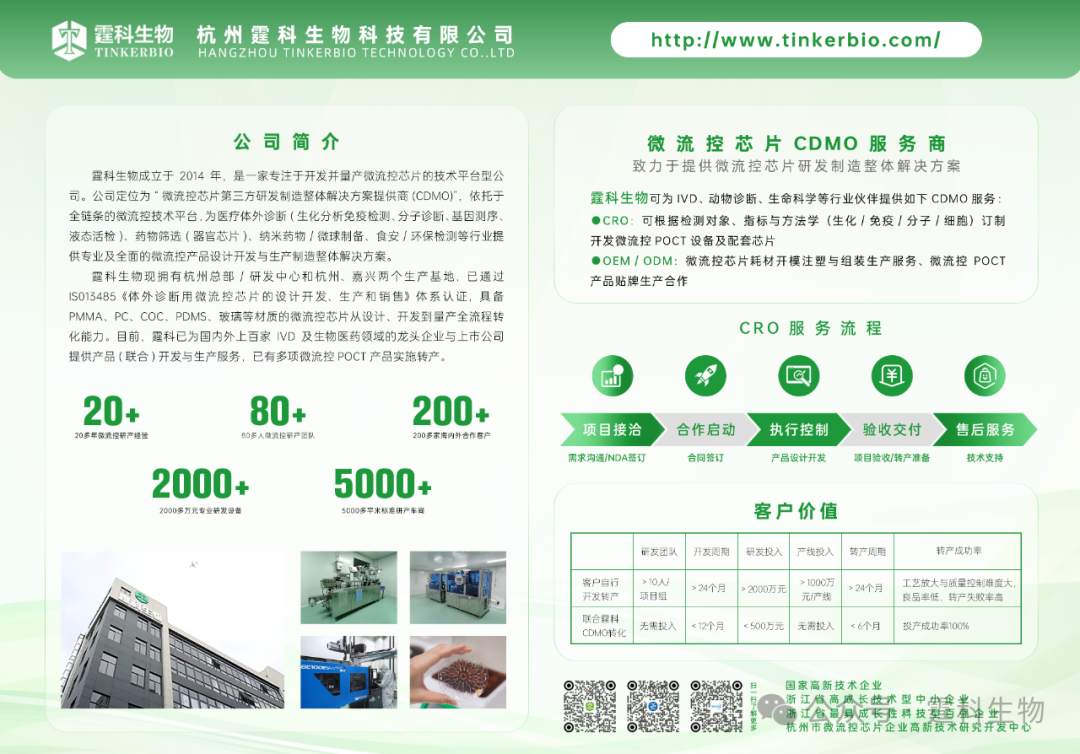 ////////////////////// 近年来,微流控芯片特别是微流控POCT技术在IVD领域获得广泛关注。后疫情时代,伴随着国内集采政策的推出及实施,传统IVD检测技术和产品的差异化布局与创新升级成为行业发展方向。微流控芯片是传统IVD产品创新升级的一个理想技术平台,具有“便携化、全自动、全集成、高通量、多指标”的显著优势,特别适合应用于POCT现场、即时诊断(或家庭自测),能够实现样本进结果出,简化传统医疗诊断复杂的分析操作流程。 通常情况下一套完整的IVD微流控系统包含“试剂、芯片、仪器”三要素,试剂体系是检测方法学的基础,微流控芯片是作为样本处理、生化反应与分析检测的核心耗材载体,分析仪器是实施流体控制、温度控制与获取检测结果的辅助工具。三个要素、三支团队,相辅相成缺一不可。其中,微流控芯片作为一种创新型产品的关键核心,需要企业投入大量时间和金钱去开发,目的就是要解决市场应用痛点,产品尽快投入市场。时间就是金钱,开发速度越快,上市越早,市场占有率提升越快,越能早日实现产品市场盈利。 人:开发人员 机:加工和测试设备 料:芯片材料 法:产品研发的方法 环:芯片加工测试的环境 从以上可以看出,人、机、料、法、环,不管从哪一个方面看,微流控芯片产品的开发离不开经费支撑。预计一个具有专业和高效特征的芯片研发项目,至少包括人力投入(200万/年)、前期设备投入(≥1000万)和实验室/工厂投入(≥500万),总计1700万左右的费用投入。而目前来说,真正有成功的微流控芯片研发和工程化经验,以及成本意识和商业意识的团队屈指可数。因此行业内也可以听到不少公司干了不到一年就鸣金收兵了的消息,因为看起来确实投入产出不成正比。但对于企业来说,如若不做上述前期投入,不具备全面而精悍的团队、丰富而完善的加工测试设备、稳定可靠齐备的芯片材料、合规合理的检验标准和方法,以及良好的加工测试环境,其研发过程可能是痛苦不堪,甚至是孤立无援的。要想研发做得好,初始的投入少不了,微流控自研项目入局者还是要有清晰的认识和充分的准备。 “专业的人做专业的事”,霆科生物作为一家具有20多年微流控研产经验,80多人的微流控研产团队,2000多万元微流控专业研产设备,5000多平米标准研产车间的老牌微流控芯片开发商,已实现多项产品的设计、转产、量产完整闭环,可以提供微流控芯片的CDMO服务,为客户实现专业、高效、低价、优质的微流控芯片设计开发和生产制造。 |