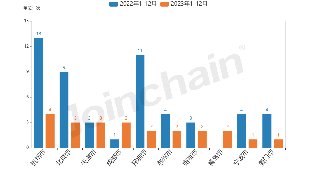 备注:如数据过多,按地区融资事件数选取最多10个城市进行展示。