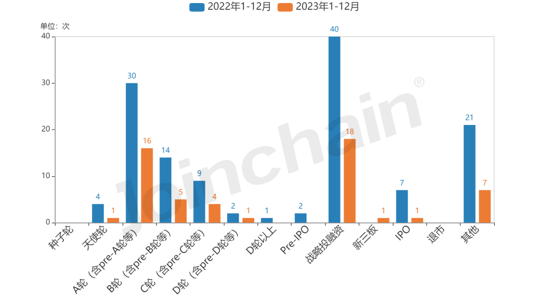 图表2 2022年1-12月 VS 2023年1-12月体外诊断仪器领域融资轮次对比情况