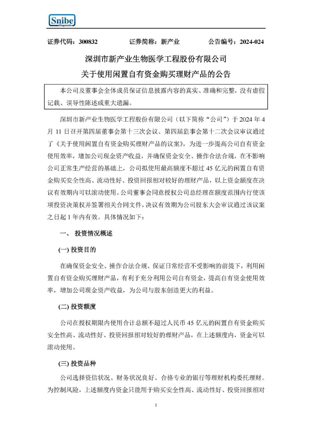 新产业4月11日公告,为进一步提高公司自有资金使用效率,增加公司现金资产收益,并确保资金安全、操作合法合规,在不影响公司正常生产经营的基础上,公司拟使用最高额度不超过45亿元的闲置自有资金购买安全性高、流动性好、投资回报相对较好的理财产品,以上资金额度在决议有效期内可以滚动使用。公司董事会同意授权公司总经理在额度范围内行使该项投资决策权并签署相关合同文件,决议有效期为公司股东大会审议通过该议案之日起1年内有效。