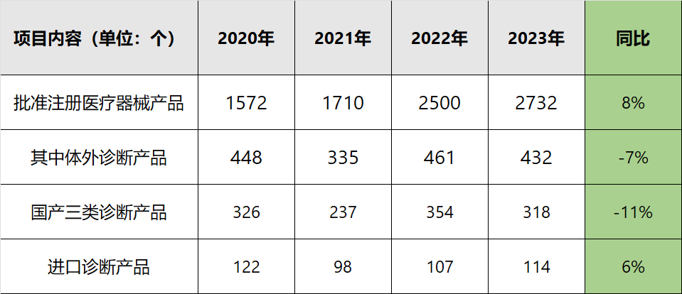 本次CACLP同往年一样,也做了调查问卷,这次调查问卷有效调查表493份,是历年之罪,基本得到的结论为:2023年整体式下降趋势,2024年较2023年乐观,预计2024年增长在10%左右。根据2023年的市场分析预测,各个细分市场的增长潜力分布在15%到25%的范围内。在这个范围内,市场增长潜力的排名从高到低依次是:即时检测(POCT)、分子诊断、免疫检测、病理学、微生物检测、血液及体液检测和生化检测。值得注意的是,即时检测(POCT)和分子诊断的竞争非常激烈,POCT仅以微弱的优势领先于分子诊断,占据了榜首位置。与此同时,生化检测领域虽然依然在市场中占有一席之地,但已经是第五年连续排在最后一位,显示出其增长潜力相对较低。这些发现与调研问题“未来最具发展潜力的产品线”中得出的前三名结果相一致,体现了市场对这些领域未来发展的期待和重视。对于未来3-5年的行业发展预测,报告中也给出了一些看法。根据最新的综合加权排序结果,各领域的市场重要性排名发生了一些变化。分子诊断凭借其在精准医疗和疾病预防方面的重要作用,成功跃升至排名首位。紧随其后的是即时检测(POCT),它以便捷的检测方式和快速的诊断能力,继续保持着市场的高度重视。值得注意的是,免疫检测领域在本次调研中排名上升,超越了POCT,成为第二,这是自2018年以来的首次变化,显示出免疫检测领域的快速发展和市场认可度的提升。血液和体液检测凭借其在临床诊断中的基础性作用,稳居第五位。病理学检测则在本次调研中表现突出,排名上升至第五位,这是该领域自参与调研以来获得的最高排名,反映出病理学在疾病诊断中的核心地位和不断增强的市场影响力。微生物检测虽然在本次排序中位列第六,但其在感染病防治和公共卫生领域的重要性不容忽视。最后,生化检测领域在本次调研中排名第七,这是继2019年之后,生化检测再次位于排名的最末位,可能意味着该领域需要进一步的技术创新和市场策略调整,以提升其市场竞争力。整体来看,这些变化反映了市场对不同检测技术的需求和发展趋势,也为相关企业和研究机构提供了宝贵的市场信息和发展方向。截止到2023年12月份,国家食品药品监督管理总局批准注册国内三类及进口体外诊断产品(包含二类、三类及港澳地区)共计432个,其中国产三类体外诊断产品318个,占体外诊断产品73.6%;进口体外诊断产品114个,占体外诊断产品的26.3%。