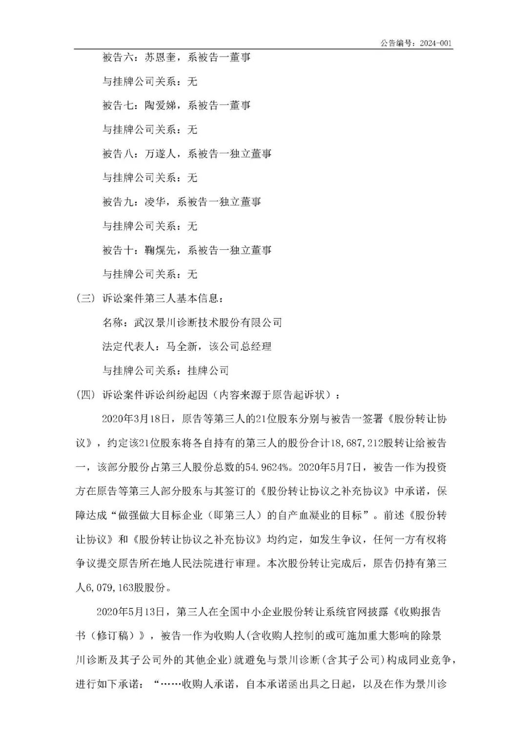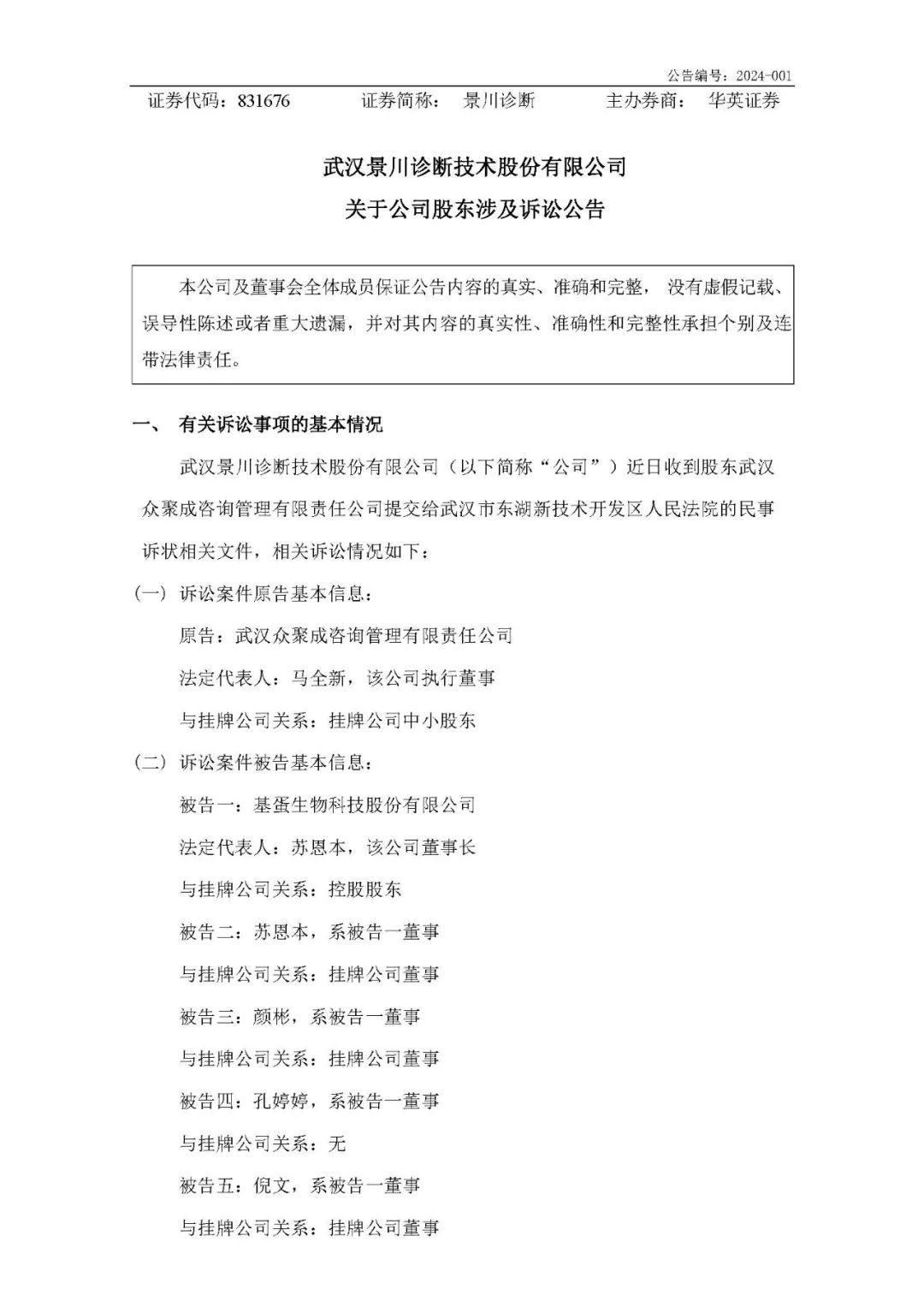 4月23日,新三板挂牌企业景川诊断发布公告,公司中小股东武汉众聚成咨询管理有限责任公司作为原告,对公司控股股东基蛋生物及其9位董事发起民事诉讼,希望法院依法确认基蛋生物与景川诊断之间存在同业竞争行为,并要求基蛋生物立即停止同业竞争行为。从景川方描述来看,是发现基蛋生物自己注册的全自动凝血分析仪和景川诊断的产品属于同类产品,在当初的某一份约定中违反了约定,所以景川要求基蛋停止同业竞争、道歉、赔偿经济损失,希望法院能够确认同业竞争行为。(具体事情的真实情况,需要结合基蛋后续的回应综合来看。) 2020年,基蛋生物公告收购武汉景川诊断54.9624%的股份,收购总价款为63,910,265.04元人民币;股份转让完成后,公司拟按照3.42元/股的价格认购景川诊断新增股份,认购金额为10,000,080.00元。本次交易完成后,基蛋生物将持有景川诊断58.5289%的股份。收购及增资后,景川诊断成为公司控股子公司,并纳入公司合并报表范围。通过景川诊断,公司将进入凝血检测的行业细分领域,开拓公司凝血检测业务板块。双方在去年8月层发过一次诉讼。起因是景川要求基蛋完成对股东剩余股份的收购。双方对收购事宜未达成一致。基蛋并未认可,并在11月反诉景川诊断要求解除收购剩余股份的约定。此事后来并无新进展。此次景川再次发难,应该是通过这一行为再次向基蛋施加压力。 截止目前,对于此次诉讼,基蛋生物尚未公开回应,文末公告为景川单方面的陈述。 现在来看,IVD企业之间并购也是一个很复杂的事情,收购完成整合是一方面。另外还可能面对利益的问题一地鸡毛的司法纠纷,昔日合作伙伴变仇人,一声叹息。