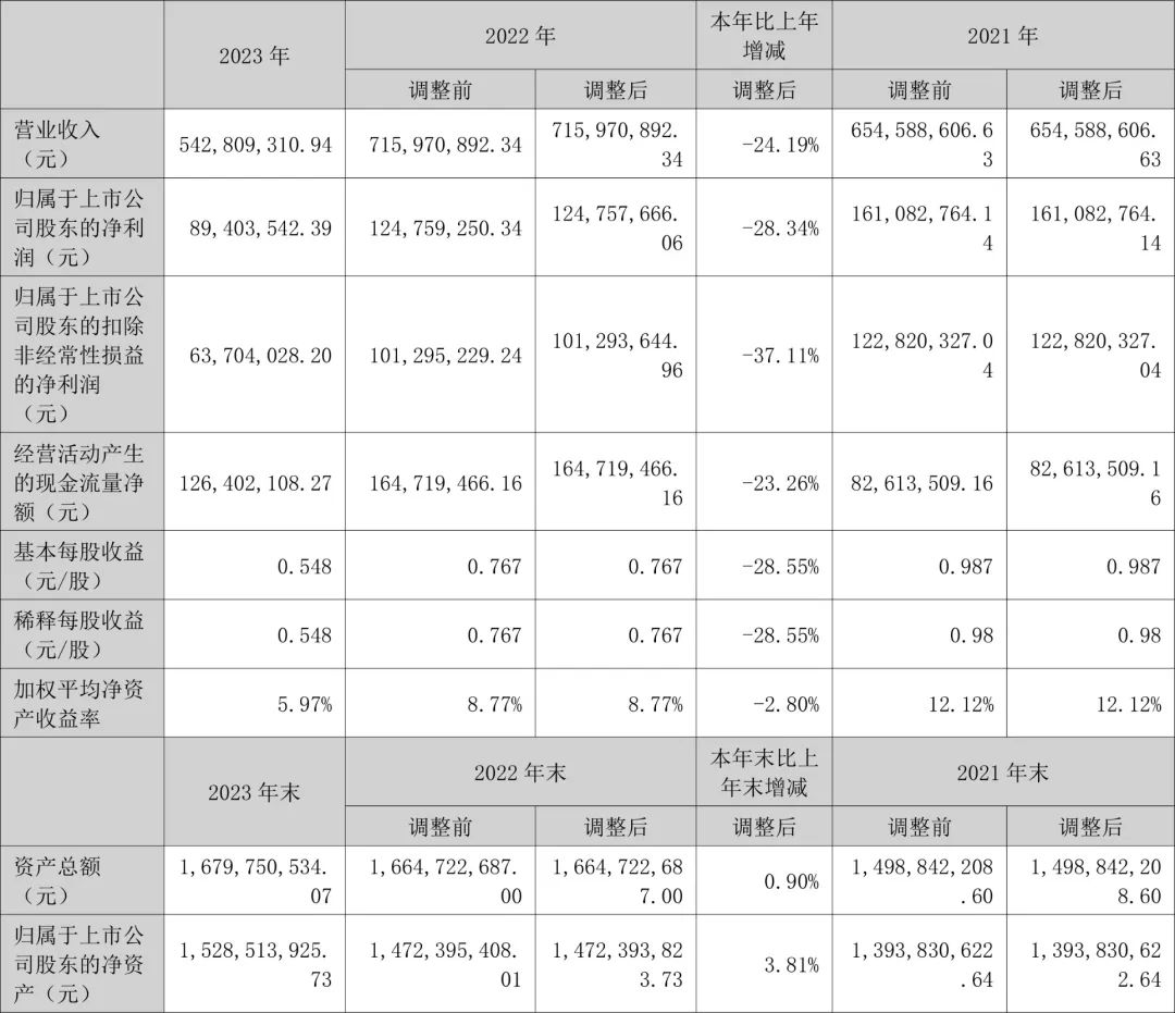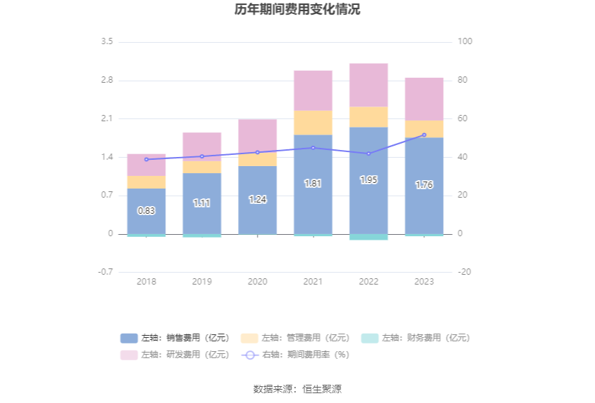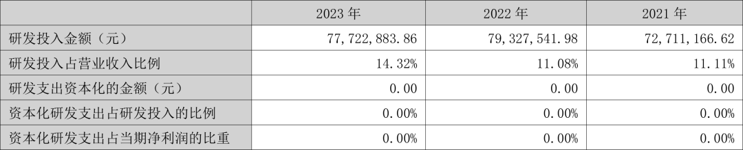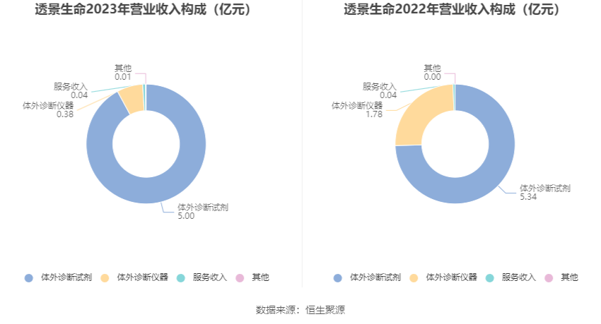 透景生命4月23日披露2023年年报。2023年,公司实现营业总收入5.43亿元,同比下降24.19%;归母净利润8940.35万元,同比下降28.34%;扣非净利润6370.40万元,同比下降37.11%;公司2023年年度利润分配预案为:拟向全体股东每10股派1.5元(含税)(约2462万元)。 数据统计显示,透景生命近三年营业总收入复合增长率为3.50%,在体外诊断行业已披露2023年数据的17家公司中排名第9。近三年净利润复合年增长率为-9.48%,排名11/17。 年报显示,公司主要从事自主品牌体外诊断产品的研发、生产与销售。 分产品来看,2023年公司主营业务中,体外诊断试剂收入5.00亿元,同比下降6.23%,占营业收入的92.19%;体外诊断仪器收入0.38亿元,同比下降78.75%,占营业收入的6.98%;服务收入收入0.04亿元,同比增长17.29%,占营业收入的0.81%。 截至2023年末,公司员工总数为574人,人均创收94.57万元,人均创利15.58万元,人均薪酬31.46万元,较上年同期分别变化-6.22%、-11.36%、39.86%。 2023年,公司毛利率为65.26%,同比上升8.22个百分点;净利率为15.60%,较上年同期下降1.68个百分点。从单季度指标来看,2023年第四季度公司毛利率为70.87%,同比上升10.16个百分点,环比上升1.61个百分点;净利率为31.56%,较上年同期上升13.31个百分点,较上一季度上升26.34个百分点。 分产品看,体外诊断试剂、体外诊断仪器、服务收入2023年毛利率分别为70.00%、3.02%、67.77%。 进一步统计发现,2023年公司自由现金流为3.05亿元,相比上年同期增长161.22%。 2023年,公司期间费用为2.80亿元,较上年同期减少1966.09万元;但期间费用率为51.63%,较上年同期上升9.74个百分点。其中,销售费用同比下降9.8%,管理费用同比下降15.5%,研发费用同比下降2.02%,财务费用由去年同期的-1123.54万元变为-446.14万元。 2023年全年,公司研发投入金额为7772.29万元,同比下降2.02%;研发投入占营业收入比例为14.32%,相比上年同期上升3.24个百分点。此外,公司全年研发投入资本化率为0。 |