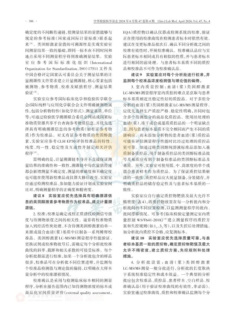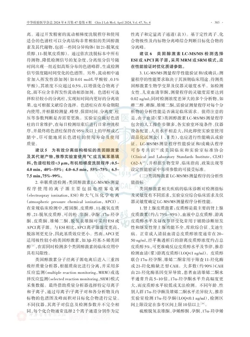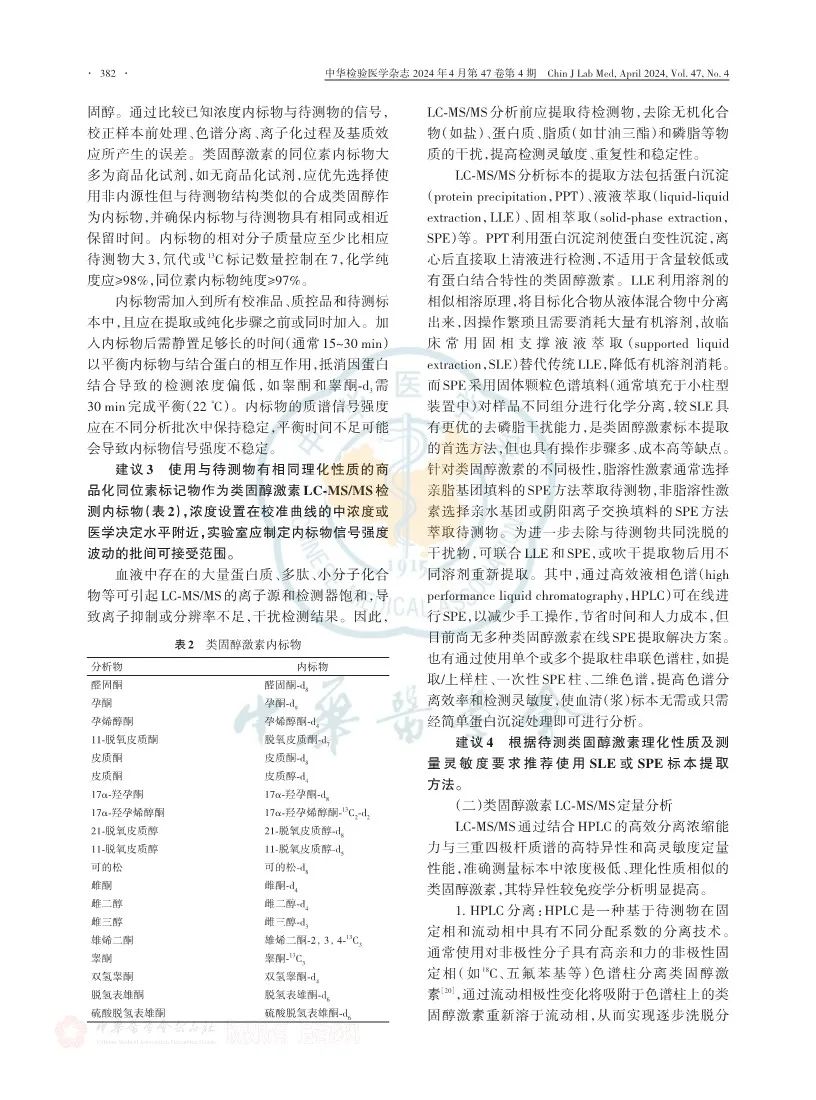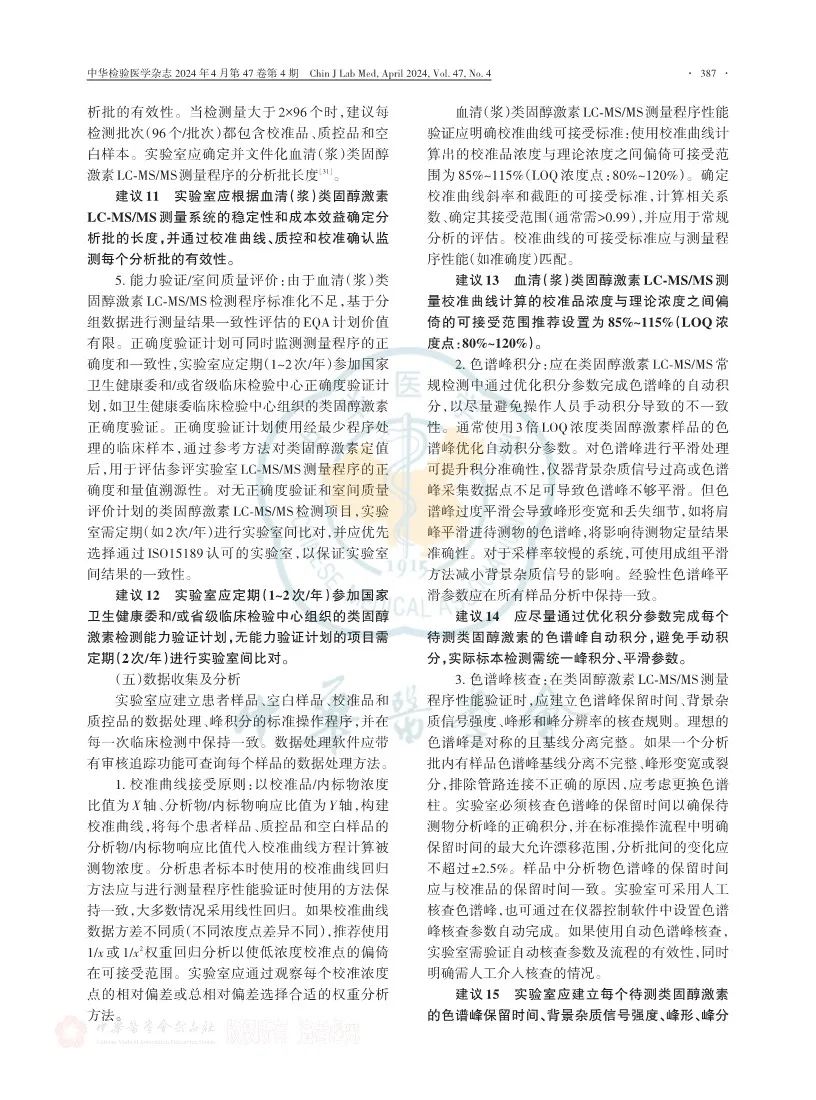 近日,中国质谱学会临床质谱专家委员会最新发布了《血清(浆)类固醇激素液相色谱串联质谱检测质量保证专家共识》,针对血清(浆)类固醇激素检测,涵盖了19个类固醇激素目标物,旨在确保检测结果的准确可靠性。 类固醇激素在血浆中的含量极低(pg含量),常规检测手段如生化免疫学往往很难精准检测,而且免疫学方法可检测的激素项目有限,且不同免疫平台的检测结果差异较大。遇到非特异性干扰时,检测结果可能给临床诊断带来困扰。而LC-MS/MS方法与传统方法相比具有更高的灵敏度和特异性,能够准确测定目标物的浓度,在激素检测中具有巨大优势,从而为临床诊断和治疗提供更可靠的依据。目前,质谱技术已经是激素类项目实验室检测公认的金标准。 但是开发一项质谱检测类固醇激素的完整方案是十分复杂的。该共识的发布将标准化检测过程,明确了样品处理、仪器校准、数据分析等关键步骤,从而为各个医学实验室提供了统一的操作指南。这不仅有助于提高检测的准确性和可靠性,也为医学研究和临床实践提供了更可靠的基础和质量保障。 附件: |