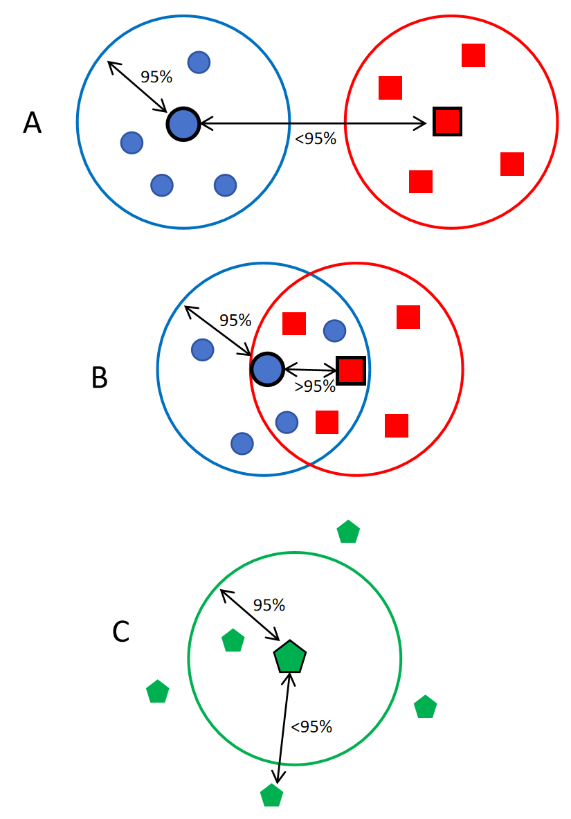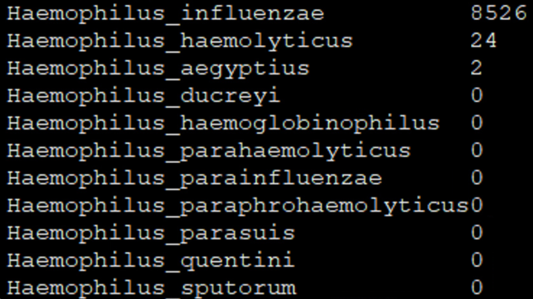 输出结果第二列flag值为4,即无比对结果,在比对软件层面这条序列直接无法比对上参考序列。这是因为两条序列在第18位有个错配,当最小种子长度是31的时候,查询序列生成的所有长度为31的种子里都会至少含有1个错配,而在比对过程中种子是精确匹配的,因此在种子匹配环节这条序列就比对不上了。 所以,如果用Kraken软件,且默认k-mer长度是31,那么这条序列就会无比对结果。 可以看出,同样的两条序列,即使同一个软件,不同的比对参数设置就得到了不同的比对结果,甚至直接决定着一条序列是否能比对上。所以在实际应用场景中需要不断调整比对参数进行测试,根据最理想的结果,找出最优的比对参数。 这种比对参数的不同在实际应用中会带来多大的影响呢?以呼吸道常见的病原体流感嗜血杆菌为例。 使用BWA MEM的默认参数(以ANI大于95%为物种分类阈值):比对上序列数是31,415。 优化比对参数后:比对上的序列数是34,775,提升了约10%。 仅仅是比对参数的调整就带来10%的信号值提升,但更重要的是,这10%的序列在默认参数的时候比对不上流感嗜血杆菌,但它们会可能错误比对上其它物种去,导至出现假阳性的结果。 比对参数之后,分类算法对分类结果的影响更大,特别是高度同源的物种。 序列是唯一比对时,可以直接分类到比对上的物种,序列多比对时(同源物种经常出现的问题)就需要用LCA进行分类。但是对于一些同源性高的物种,如果使用统一固定的ANI作为阈值,那么就可能出现要么分类到种的序列特别低,导至灵敏度低;要么出来很多同源的假阳性物种,导至特异性低。针对这些问题,可以个性化调整ANI阈值,还可以采用序列与不同物种的ANI的差异进行判断,甚至采用更为复杂的机器学习方法,如贝叶斯估计。 还是以流感嗜血杆菌为例,由于它与属内的埃及嗜血杆菌、溶血嗜血杆菌、副流感嗜血杆菌等在基因组上具有较高的同源性,而这些同源物种通常是常见的呼吸道定植菌。因此,如果分类不准确,就可能导至错误的将这些定植菌识别为流感嗜血杆菌,从而产生假阳性结果。 如果直接使用比对软件出来的默认结果且不做LCA分类,结果如下: 除了流感嗜血杆菌这个真阳性以外,出现了多个属内的假阳性,序列数还不低。真阳性与最高序列数的假阳性的信噪比是:28271/3671≈7.70 做了LCA分类之后: 真阳性的序列数有所下降,但假阳性的序列数降低幅度更大,假阳性物种的数量也减少了。真阳性与最高序列数的假阳性的信噪比是:20534/160≈128.33,比原来提高约17倍! 做了LCA分类+分类算法优化后: 真阳性的序列数还是有所下降,假阳性的序列数也以更大的幅度下降,假阳性物种也降低到了2个,有个假阳序列数也只有2条。真阳性与最高序列数的假阳性的信噪比是:8526/24=335.25,比仅采用LCA算法再提高约3倍。 需要说明的是,不同的物种可能有不同的模式,另外也可能需要在信号值和信噪比之间做一些平衡,在物种检出序列数低的时候对灵敏度有一定的影响。 其他一些属,如链球菌属、葡萄球菌属等也存在属内不同的物种有些是定植,有些是致病菌,且同源性比较高的情况。特别是定植菌通常丰度还很高,分类算法对同源性物种区分不好时,极容易带出假阳性的致病菌。部分临床上重要的同源性高的物种如下,红色字体的是临床比较常检出或容易鉴定错误的。 从上面的例子中也可以看出,尽管基因组数据库、比对算法、分类算法都做了深度优化,但还是有一些假阳性结果,还有没有什么解决方案了呢? 一种可能的策略是对每个检出的物种引入“鉴定置信度”打分。 mNGS理论上是一种无偏倚测序方法,对于真阳性的病原体,其测到的序列落在基因组上任意位置的概率符合泊松分布,在不考虑GC含量等差异的影响下,也就是基因组任意相同长度的区间检出的序列数是相近的。直观上的感觉就是检出来的序列在基因组上图画出来的分布图是“均匀的”。例如长这样: 图24. 真阳性物种检出序列在基因组上的分布。基因组分为50个区域,每个区域比对上的序列数无显著差异。 而假阳性的物种是有一定特征的,要么是片段污染,要么同源鉴定错误等。污染的片段、同源的区域都是一些比较小的片段,所以假阳性的序列基本都是出现在这些位置上,是不符合泊松分布的。那么画出来的基因组分布图是很“不均匀的”,例如长这样: 图25. 假阳性物种检出序列在基因组上的分布。基因组分为50个区域,每个区域比对上的序列数差异显著。 这种分布的随机性可以用“离散度”来衡量,但是仅仅这个离散度还是不够的,特别是做RNA检测时,本身基因的表达是有差异的,在测到的序列在基因组上不同的基因区域出现的概率不相等,所以还需要引入其它指标,例如检出序列数、ANI、其它物种的检出、同源物种的先验信息、测序深度、宿主率等等指标,进行不同权重的打分建模,训练出性能可用的模型来判断。这也是一个大工程,没有统一标准,不同人有不同思路和经验,不展开讨论。 以新冠病毒为例,如果数据库没有新冠病毒的序列(比如刚发现新冠时),就会检出来SARS-CoV的假阳,如下图,检出序列数较少,序列在基因组上分布不均匀,ANI仅有94.5%,最终算出来的置信度只有59.68%(90%以上为可信)。 图26. 新冠病毒导至的SARS-CoV假阳性检出。只有部分同源性高的区域有序列检出,每个区域检出的序列数差异显著,最终算出的置信度也