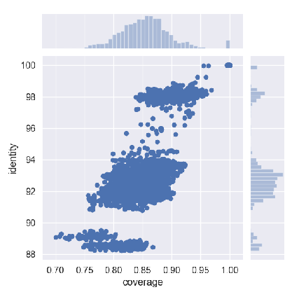 即: 尾部的比对出来了gap,因为参考序列是两个连续的C,实际上这种比对结果跟最初假设的结果是等同的。间隙开放罚分1,错配罚分是2,软切罚分是5,得分最高的是间隙开放策略。这种比对结果是1个错配和一个单碱基的gap,ANI是48/50=96%,可以过95%的阈值,比对上了。 如果调整种子最小长度,设置为31(-k 31),这是kraken默认的k-mer长度,就会出现下面的情况: