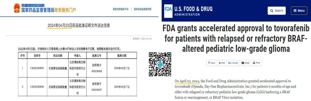 2024年4月23日,中国和美国肿瘤治疗领域双双传来振奋人心的消息,共同开启了脑胶质瘤精准诊疗的新篇章。 2024年4月23日(北京时间),中国国家药监局(NMPA)公布正式批准伯瑞替尼(MET抑制剂)用于既往治疗失败的具有PTPRZ1-MET融合基因的IDH突变型星形细胞瘤(WHO 4级)或有低级别病史的胶质母细胞瘤成人患者。1 这是首个获批用于MET融合脑胶质瘤适应症的MET抑制剂。 2024年4月23日(美国时间),美国食药监局(FDA)加速批准Tovorafenib(RAF抑制剂)用于BRAF基因融合/重排或BRAF V600突变的6个月及以上复发或难治性儿童低级别胶质瘤患者。2 这是首个获批用于BRAF融合/重排脑胶质瘤适应症的RAF抑制剂。(对于BRAF V600E突变儿童低级别胶质瘤,去年3月FDA批准了诺华的BRAF/MEK抑制剂(达拉非尼+曲美替尼)3) ▲ 4月23日,中美药监局在脑胶质瘤上双重发力 自此,脑胶质瘤迎来精准诊疗新时代,无分子不诊疗。 脑胶质瘤源于脑神经胶质细胞,是中枢神经系统(CNS)中最常见的原发性肿瘤(约占颅内肿瘤的46%),年发病率为1.9~9.6/10万,受年龄、性别、种族及地理位置等多种因素影响。4,5 我国脑胶质瘤的年发病率为5~8/10万,5年病死率仅次于胰腺癌和肺癌。6 历史上,肿瘤分类一直依赖于组织病理学和免疫组化特征。然而,相同形态学特征的肿瘤患者在临床结果和治疗反应上常存在差异,这主要归因于肿瘤内在的遗传学特征差异。2016版WHO中枢神经系统肿瘤分类(WHO CNS4)首次引入了结合病理学和分子学特征的胶质瘤综合诊断方法。7 随后的2021版WHO中枢神经系统肿瘤分类(WHO CNS5)对胶质瘤分类系统进行了重大更新,通过纳入更多分子生物标记物,使分类体系发生了根本性变革,此标准也是目前脑胶质瘤诊断及分级的重要依据。8 ▲ 2016版和2021版WHO-CNS肿瘤分类变化 脑胶质瘤呈现多种分子变异特征,这些分子变异在胶质瘤诊断、预后、预测和治疗中起到关键作用。最常报道的分子变异包括ATRX,BRAF,CDKN2A/B,IDH1/2,NF1,RB1,TP53等基因突变,以及TERT启动子和MGMT启动子甲基化状态。此外,常见的分子变异还包括拷贝数变异,如染色体1p/19q联合缺失,EGFR扩增,染色体7+/10-以及融合/重排(EGFRvIII重排,MET融合,BRAF融合/重排)等。 2021年发布的《WHO中枢神经系统肿瘤分类标准(第五版)》(WHO CNS5)将脑胶质瘤分为1~4级,1/2级为低级别脑胶质瘤,3/4级为高级别脑胶质瘤。级别越高,提示恶性程度越高,预后越差。 同时,WHO CNS5整合了肿瘤的组织学特征和分子表型,将胶质瘤患者分为5个组别:1)成人型弥漫性胶质瘤(成人胶质瘤主要类型);2)儿童型弥漫性低级别胶质瘤(预期预后良好);3)儿童型弥漫性高级别胶质瘤(预期高侵袭性);4)局限性星形细胞胶质瘤(更加实性生长方式);5)室管膜肿瘤(现根据部位及组织学和分子学特征分类)。此标准是目前脑胶质瘤诊断及分级的重要依据。6,8 ▲ 2021年WHO CNS5分类标准 WHO CNS5,根据生长方式,将胶质瘤分为弥漫性和局限性两大类。 根据临床和分子病理学特征,将弥漫性胶质瘤分为成人型和儿童型两大类。需要注意的是,WHO CNS5对“成人型”(主要发生于成人)和“儿童型”(主要发生于儿童)的术语定义中使用的是“主要”一词,这是因为儿童型肿瘤有时可能发生在成人中,特别是年轻人;成人型肿瘤可罕见发生于儿童中。此诊断分类并非完全依据肿瘤发病年龄。 根据组织学形态和分子标记物,将成人型弥漫性胶质瘤患者再细分为3种类型,即星形细胞瘤,IDH突变型;少突胶质细胞瘤,IDH突变和1p/19q联合缺失型;胶质母细胞瘤,IDH野生型。对于星形细胞瘤,IDH突变型分为3个级别,即CNS WHO2-4级。儿童型弥漫性胶质瘤分为两大类,即儿童型弥漫性低级别胶质瘤和儿童型弥漫性高级别胶质瘤。 ▲ 胶质瘤整合病理诊断流程[参考资料9] 脑胶质瘤进行分子检测是为了利用分子生物学技术分析肿瘤基因特征和突变情况,以准确分型、制定治疗方案并评估预后,实现更精准和个性化的治疗。尤其是近日刚刚批准了针对胶质瘤的MET抑制剂和RAF抑制剂,分子检测显得尤为重要。 目前,《脑胶质瘤诊疗指南(2022版)》和《中国抗癌协会脑胶质瘤整合诊治指南(精简版)》均推荐脑胶质瘤患者应进行21种分子标志物的检测,以提供全面诊断价值和预后意义。 ▲ 胶质瘤常用分子病理学检测指标推荐[参考资料6,9] 脑胶质瘤作为一种复杂的疾病,确实是由多种基因组变异所驱动的。因此,在脑胶质瘤的分类和治疗策略方面,需要更加深入地了解其背后的分子机制。 近日,《Brain Tumor Res Treat》杂志上发表了一项研究,证实NGS技术能够实现对脑胶质瘤多重基因变异的全面评估,为精准分类和精准治疗提供关键依据。NGS在脑胶质瘤诊疗中的作用日益凸显,应成为临床脑胶质瘤检测的标配。10 ▲ NGS对脑胶质瘤患者的全面基因组分析 脑胶质瘤复杂且小众,涉足NGS检测玩家并不多。在脑肿瘤NGS检测的牌桌上,曾经有多位玩家激烈角逐,主要包括领星、泛生子、阔然和先声,每一家都持有自己独特的牌面,试图在这细分领域中占据一席之地。然而,随着市场的洗牌和竞争的加剧,一些曾经的玩家已经悄然离场。领星的退场,泛生子的私有化退市,让牌桌的格局再次发生了微妙的变化,目前阔然与先声成为主要玩家。而阔然在脑肿瘤领域的深耕细作,逐步赢得了业界的认可和患者的信赖。 参考资料: 1.https://www.nmpa.gov.cn/zwfw/sdxx/sdxxyp/yppjfb/20240423143915191.html 2.https://www.fda.gov/drugs/resources