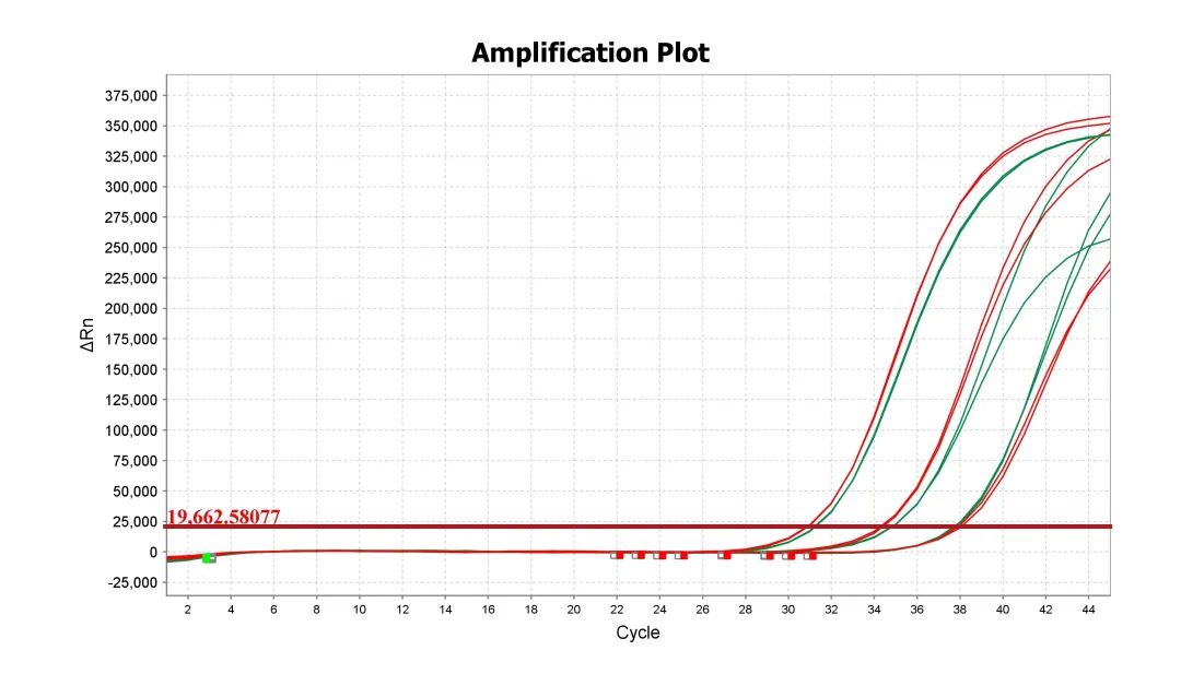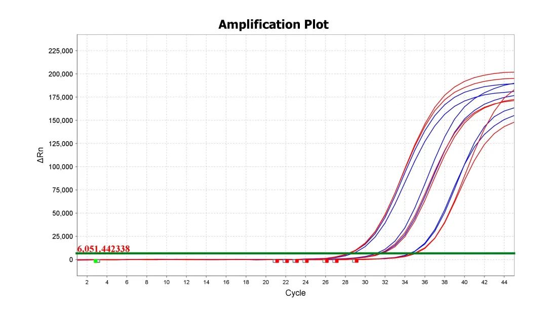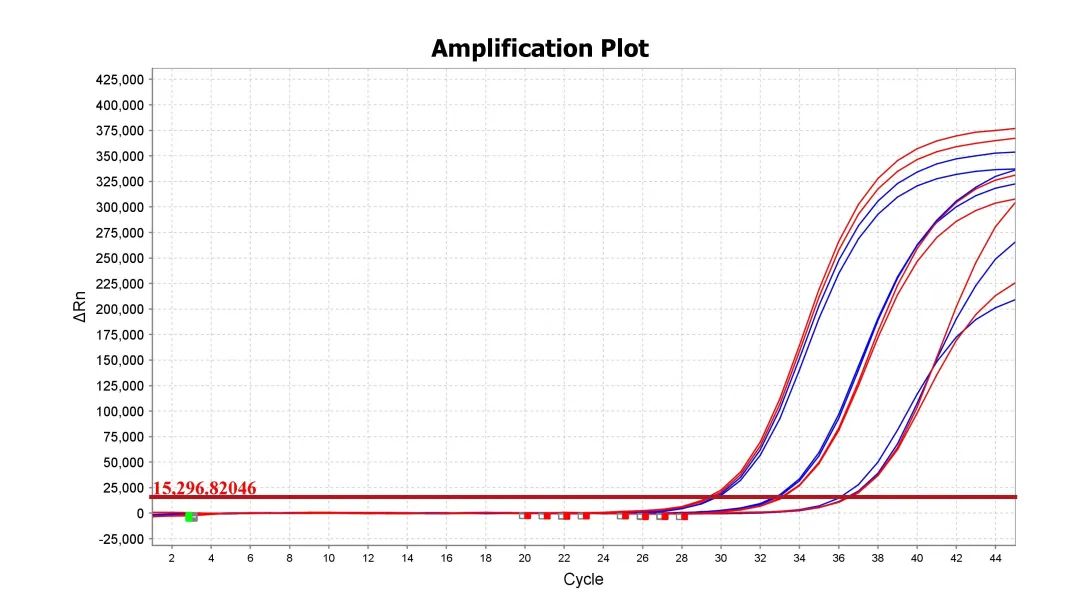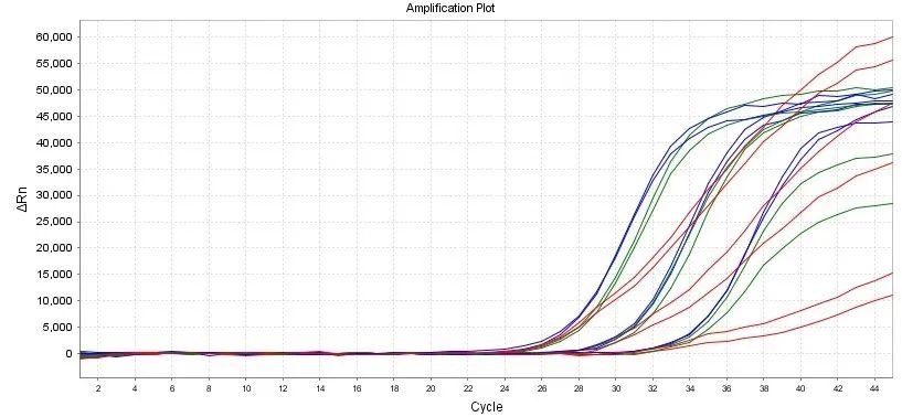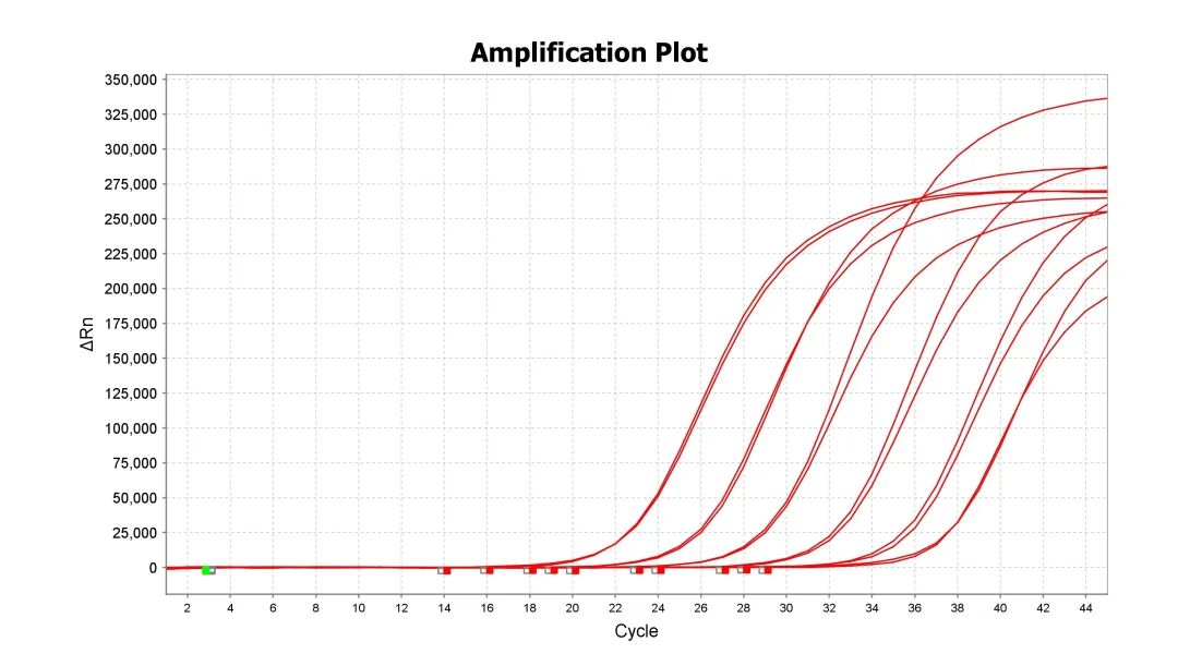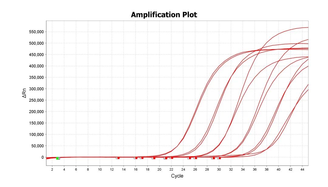 实验设计:以新冠假病毒RNA为模板,10倍梯度稀释模板,WinScript One Step RT-qPCR UKit进行检测,实验结果如下: