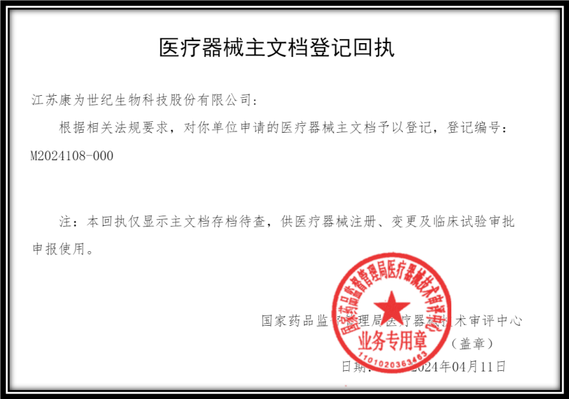 摘要: 康为世纪CW3346试剂盒迎来了医疗器械主文档登记的好消息!