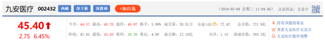 开盘后,九安医疗股价大涨,最高涨幅超8%。