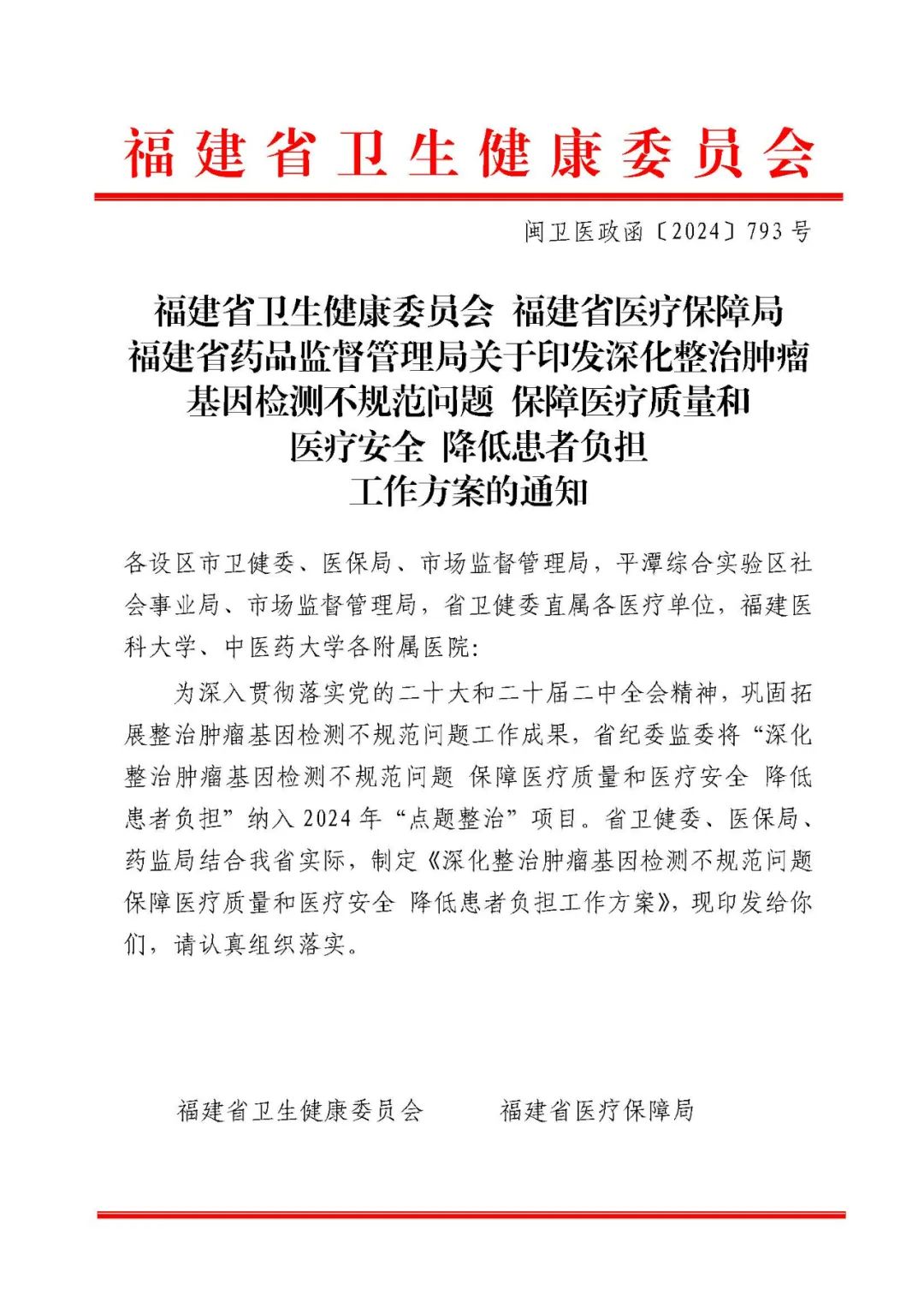 方案重点内容: 1、至2024年底,省级层面出台肿瘤基因检测推荐清单,开展肿瘤诊治的二级以上公立医疗机构全面制定肿瘤基因检测外送管理办法,肿瘤基因检测收费进一步规范,形成民生治理品牌。 2、基因检测项目必须是最新诊疗规范、指南和专家共识中明确提及、高度认可、对患者诊断和后续治疗有明确意义的检测项目。 3、对于本单位无法开展的基因检测项目,医疗机构应制定工作方案,建立外送检测项目目录,并根据临床实际需求,定期调整。鼓励通过建立医联体、肿瘤诊疗协作组、委托第三方等方式实施。不得由公立医疗机构内设科室及机构内从业人员私自与第三方检测机构合作开展外送样本检测项目。 4、医疗机构应认真梳理肿瘤基因检测项目,并严格按规定的肿瘤基因检测价格项目标准收费,未纳入福建省医疗服务价格项目的肿瘤基因检测项目不得收费。 5、重点对医疗机构基因检测收费是否合理、是否存在过度检测以及是否存在医生与检测机构勾连“回扣”等问题开展监督检查,并将检查情况纳入廉洁从业行动计划工作报送。 |