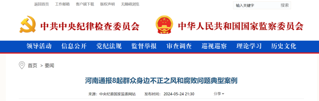 5月24日, 中央纪委国家监委网站讯 日前,河南省纪委监委公开通报8起群众身边不正之风和腐败问题典型案例。其中包括“新乡市传染病医院检验科原主任孙传俊收受回扣”一案。