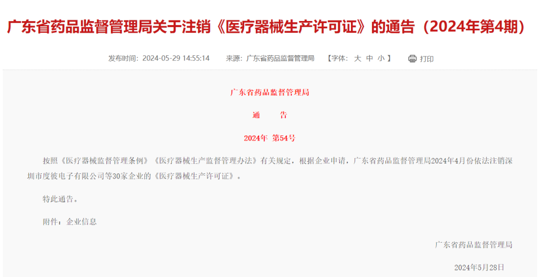 5月28日,广东省药品监督管理局发布关于注销《医疗器械生产许可证》的通告,其中涉及到两家IVD企业。分别为深圳天深医疗器械有限公司和深圳理邦实验生物电子有限公司。注销的许可证为:粤食药监械生产许20193379号,粤食药监械生产许20101878号。 天深医疗成立于2015年,是国产单人份发光的代表企业之一。2021年,万孚生物收购天深医疗100%的股权,成为万孚生物全资子公司。目前天深产品已经融入到万孚的产品线体系中。 深圳理邦实验生物电子有限公司成立于2008年,是上市公司理邦仪器的全资子公司。经营范围包括计算机软件的开发及技术咨询服务,经营进出口业务,临床试验咨询、技术咨询。Ⅱ类6870软件、Ⅱ类6840临床检验分析仪器的生产。 综合信息来看,两家IVD企业的生产许可证注销都是主动申请,应该是企业精益运营的原因。 |