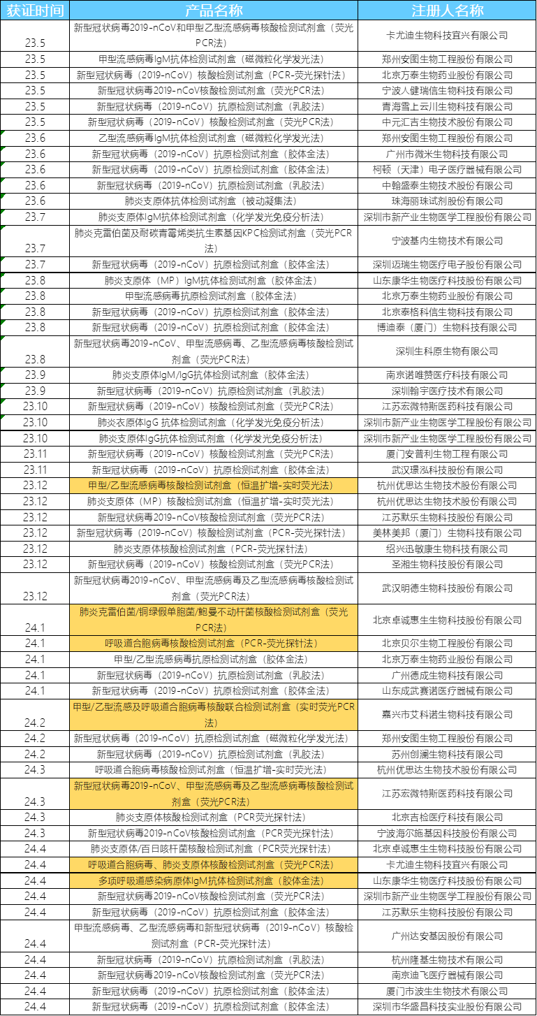 来源:易贸IVD内容团队编辑 以咽喉为划分线,呼吸道感染病常被分为鼻腔、咽喉染病的上呼吸道感染;以及(支)气管、肺部染病的下呼吸道感染。 受疫情及春秋呼吸系统流行病高发的影响,呼吸道检测市场迅速扩容。据国家药监局公开公布的信息,截止2024年4月,获批的呼吸道病原体检测产品不完全统计如下(标黄为多病原体联检产品): 呼吸道检测对象一般包括甲/乙流病毒、新冠病毒、呼吸道合胞病毒、副流感病毒、人偏肺病毒、腺病毒、肺炎支原体等中的一种或多种。近来混合感染高发,免疫力较低的儿童患者更是深受其害,包含三种及以上病原体的呼吸道联检产品因此备受重视。 |