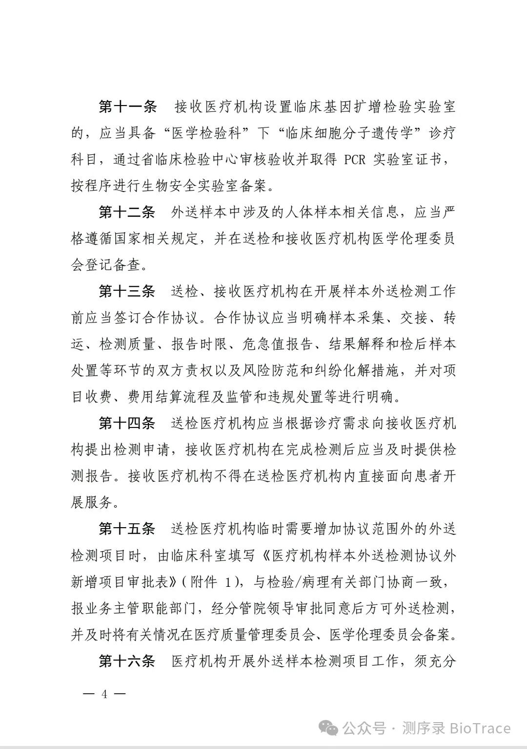 近日,山东省出台《山东省医疗机构样本外送检测管理规范》,对临床样本外送进行了更加详细的约束。 (1)鼓励医联体内部开展样本外送检测服务,城市医疗集团或县域医共体的牵头医院应当具备向成员单位提供医学检验、病理诊断等服务能力,为区域内提供同质化、标准化服务。 (2)送检医疗机构确定开展基因检测时,应当充分遵循询证医学证据,选择最新诊疗规范、指南和专家共识等中明确提及、高度认可、对患者诊断和后续治疗有明确意义的检测项目。对于无明确指征、花费较高的检测项目要严格把控,避免过多诊疗。 (3)送检医疗机构应当根据诊疗需求向接收医疗机构提出检测申请,接收医疗机构在完成检测后应当及时提供检测报告。接收医疗机构不得在送检医疗机构内直接面向患者开展服务。 (4)送检医疗机构临时需要增加协议范围外的外送检测项目时,由临床科室填写《医疗机构样本外送检测协议外新增项目审批表》,与检验/病理有关部门协商一致,报业务主管职能部门,经分管院领导审批同意后方可外送检测。 (5)送检医疗机构应当加强对本机构样本外送检测工作的事前、事中、事后监督检查,严防潜在廉政风险发生。当发现接收医疗机构有私自给予临床科室、医务人员回扣、提成等违法违规行为时,送检医疗机构应当按照协议有关约定终止合作。 附件:原文