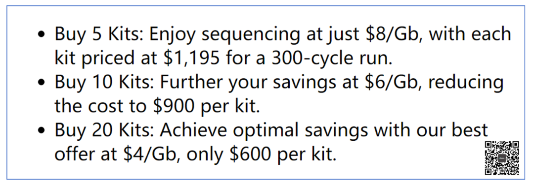 在同时购买20个测序试剂盒的情况下,PacBio的Onso测序仪成本能够降到4美元/Gb。 这个降价幅度大概是个什么水平呢?在2023JPM大会上Onso公开的价格是15美元/Gb。 直接降了超过70%... 看来PacBio这是真急了眼...会不会是生产出的试剂都要过期了... 然而,虽然目前这活动是U.S. Only。 不过,咱国内的小伙伴根本无法共情,甚至有点不屑一顾...
