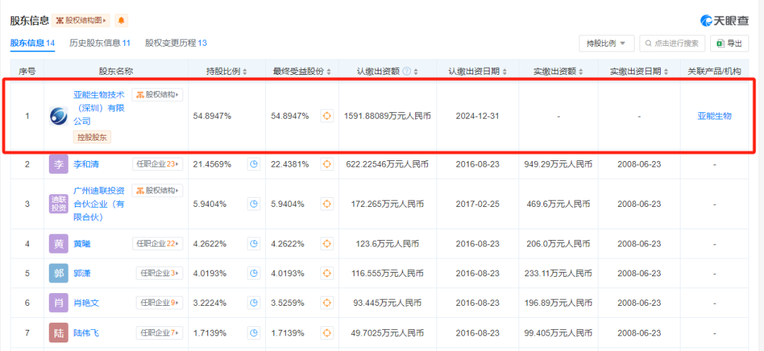 2024年5月27日,赵传淼,徐志雄,广州科学城创业投资管理有限公司,广州迪康投资合伙企业(有限合伙)等从公司股东退出,新增股东亚能生物。