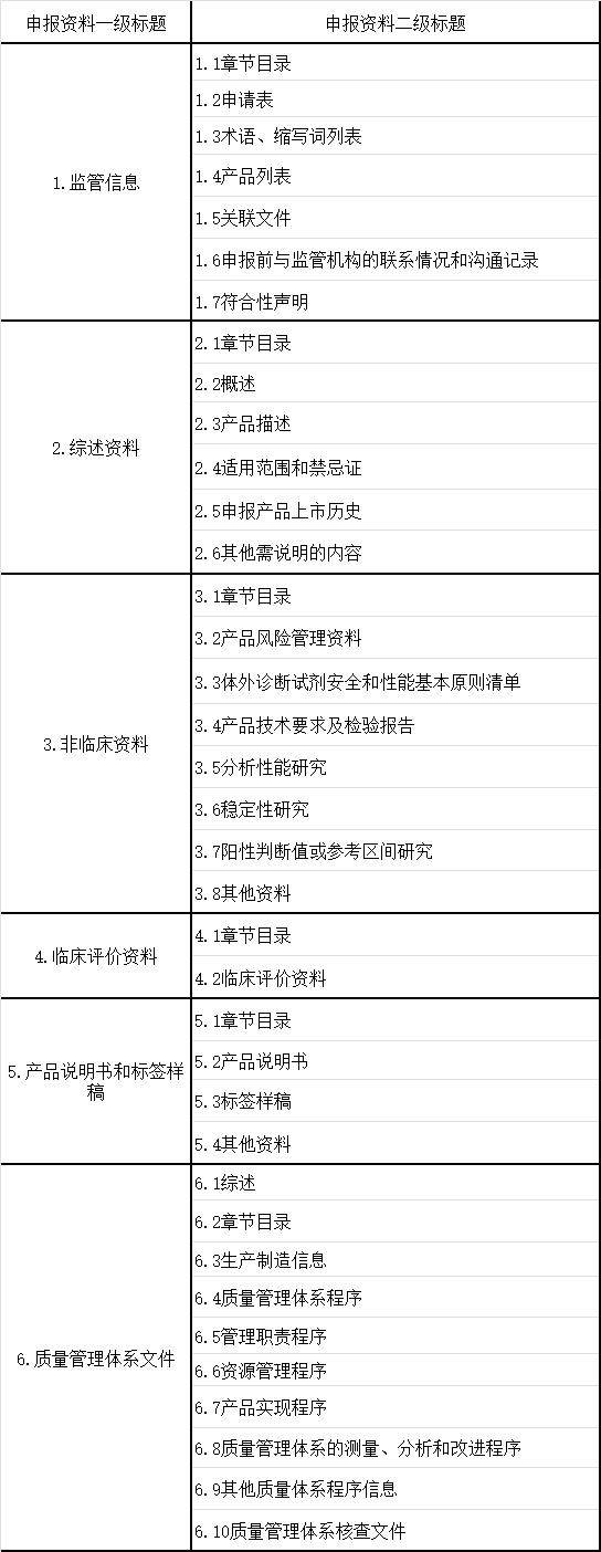 在上周的文章里面,我和大家分析了当前体外诊断产品注册申报资料的两个重要的方面。有需要了解详细内容的,可以点击链接,回看我们上周的文章。从这篇开始,我将对各个资料当中出现的常见问题,逐一进行分析。我们上周的文章里提到过,IVD产品的申报资料,包括六个大部分——监管信息、综述资料、非临床资料、临床评价资料、产品说明书和标签、质量管理体系文件。  从上面的表格当中,我们可以先看看整个申报资料的结构组成。首先,监管信息的内容,就是产品的申请表、术语、监管沟通信息等等,主要是展示申报企业和申报产品基本情况。其次,是综述资料,是我们整个申报资料的高度概括,向审评老师展示我们产品的具体情况的重要资料。然后,才是各部分的分述资料,包括了非临床资料、临床资料、说明书和标签、质量体系管理文件。所以,综述资料和后面的其他四大部分的内容,其实是构成了一个“总-分”的结构。所以,在“综述资料”当中,我们需要详细说明申报产品的整体情,包括产品的名称、管理类别、预期用途、产品描述、申报产品的上市历史等等。好,在了解了这些内容之后,我们看看,大家申报的综述资料,出现问题比较多的都在哪里。这个问题比较多的是在主要原材料、质控品和校准品、技术原理和工艺流程上。我们先看看主要原材料的具体问题,有三个问题需要特别注意。第一,需要写清楚主要原材料的来源,比如抗原、抗体、磁珠等等,它们的来源是什么。第二,是对于企业自制原材料的,要提供它的制备方法和质量标准。第三,是在填写主要原材料的名称时,不能用“物料编码”代替名称。质控品没有提供制备方法和赋值情况,而校准品,则是没有提供制备方法和溯源情况。技术原理和生产工艺的描述中,最主要的问题是,描述不清晰。很多从业者在进行技术原理描述的时候,描述含糊不清,也没有从反应原理、方法学、测量方法、分析前处理等方面,进行详细描述。整个生产过程,在我们的申报资料当中,写得过于简单。有的从业者,是采用流程图的方式来展示生产工艺流程,但是图示和过程也写得太简单,并且部分的流程没有写。像这些情形,审评老师其实是没有办法,从这些过于简单的描述当中来看到完整的流程。所以,我们在进行原理、工艺描述的时候,要尽量做到详细、清晰,让审评老师可以从我们的申报资料中,就可以了解到我们产品完整的原理和工艺。监管机构、医疗专业人员和终端用户,都是通过我们产品的预期用途,来了解产品的功能、目的和使用场景的。它需要包括产品的适用范围、预期使用环境、适用人群等。我们需要在这里,写清楚产品用于检测的分析物和功能,比如申报的产品在临床应用里是辅助诊断、鉴别诊断、筛查或监测等。还有,临床适应证的情况,比如产品的临床适应症是什么,分析物和临床适应证的关系等等。还要写清楚适用的仪器,它的使用方法是自动、半自动或者是手工,产品的检测类型是定性、定量还是半定量。另外还有,产品适用的样本的情况,比如样本类型是血清、血浆、尿液等,有没有添加剂的要求,样本采集及保存装置等。要说清楚产品预期使用的地点,是家用还是医疗机构当中使用。是由专业人士使用,还是患者可以自用。适用人群的特征需要明确,比如产品的目标人群是哪些,有什么特征,包不包括儿童、新生儿。产品的预期用途,决定了产品的使用风险,也会产品的管理类别造成影响。所以,清晰、准确地对产品预期用途进行描述,是非常重要的。在我们之前的文章中,我和大家讲过了IVD产品的申报资料要求。所以,我们要做好相应的清单,清点我们提交的资料,确保申报资料的齐全性。根据我们以往的经验来看,最容易出现遗漏的是产品的概述、产品包装描述、研发历程以及其他需要说明的内容。我们在申报的时候,会特别容易把关注的重点放在了申报产品本身,而忽略了IVD产品,其实是一个“检测系统”。这个检测系统,不仅仅有申报的产品,还可能包括样本处理的试剂、适用仪器、质控品、校准品、独立软件等等。那么这些内容,也需要在我们进行产品申报的时候,一同提交。比如,适用仪器已经获批了,它的注册信息、说明书,也应该作为申报资料的一部分,一同来提交。综述资料,是对我们申报产品的高度概括,也是申报产品基础情况的展现。希望通过这些具体问题和例子的分析,帮助大家有效完成IVD产品的综述资料。