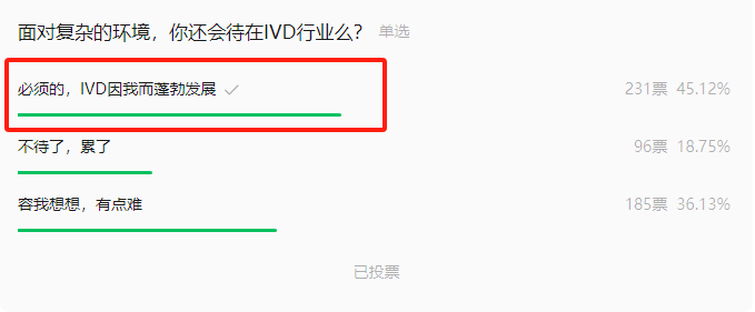 前两天我们做了个关于IVD裁员的调研,数据有点出乎意料,从行业从业者和自媒体的渲染中,IVD行业的裁员好像幅度都非常大,极易造成焦虑。 从本次调研数据来看,共有512人参与本次投票,这些人来自不同的公司,其中有116人选择了没裁员,票数最多;然后是裁员20-30%的范围;排在第三的是10-20%的裁员幅度,由此可见,大部分的公司要么没裁员,要么裁员范围在30%以内,与网上动辄50%的裁员新闻相比,调研数据显示的30%以上的裁员仅有98票,占比不到20%。 有51票选择公司 倒闭了,可见行业的洗牌和自我迭代在持续发生着,占比有10%,因此也可以借此数据,大致可以看到行业缩水的情况。 进入2024年,IVD的招聘市场也开始陆续回暖,呆小猎在2024Q1招聘黄金季的文章中就已经列出了多个营销类招聘岗位。与2023年相比,开放职位增加了一倍以上。 IVD的繁荣,离不开每一位IVD从业者,而IVD行业的高门槛,也让从事这个行业的人员,大多来自生物、检验、医学等领域,入行难也就意味着转行难,做IVD领域的大概率都会在这个行业里面摸爬滚打下去,这点也在本次的调研数据上得到了印证,面对复杂的环境,45%的从业者依旧坚定的选择继续呆在这个行业,而部分从业者36%表示当前有点难,需要想想。 |