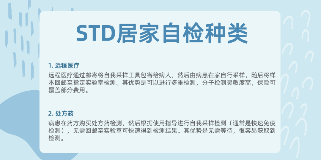 检测所需的样本类型取决于检测的疾病,衣原体、淋病和滴虫性阴道炎通常需要阴道/尿道拭子或尿液样本,而艾滋病、梅毒和丙型肝炎通常需要使用指尖血。有些衣原体、淋病和艾滋病检测只需口腔拭子,更便于自我采样10。约翰霍普金斯大学健康安全中心高级学者、医学博士 Amesh Adalja 认为,性传染病的流行已经失控。他表示,“我们知道我们漏诊了。我们知道,对接触者追踪工作开展得很晚,甚至根本没有开展。如果我们真的要认真应对性病危机,就必须让更多的人得到诊断"。