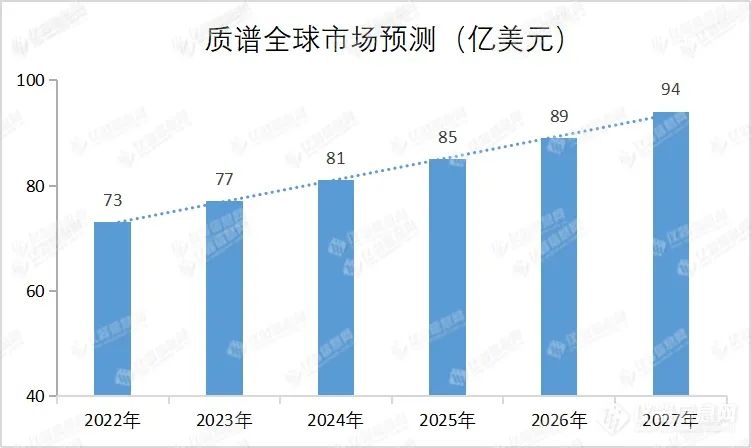 导读:2022年全球质谱仪行业市场规模约为73亿美元。在下游应用领域需求的拉动下,全球质谱仪市场将保持稳健增长的态势,预计2027年市场规模达到94亿美元,复合年增长率为5.2%。