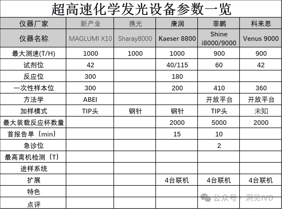 | 作者扗长安 千速博弈,谁与争锋?目标客户怎么定位? 去年新产业发布了MAGLUMI X10,意味着发光进入5.0时代,彼时的新产业还是很低调,在迪拜展出,设备参数并未第一时间在官网更新。 在看5.0时代超高速化学发光,先听笔者这么定义化学发光的5个时代,仁者见仁,智者见智,欢迎大家留言讨论。 4.0时代是大型化学发光,基本速度300-600,典型的变化就是仪器变大了很多,带了进样轨道,可以自动上样本,同时卸载样本,支持多台联机,可以外接流水线,加了一些智能功能,中途添加试剂,底物自动切换,试剂免开封在机保存,自动配洗液,支持定时一键开关机维护等。 5.0时代是超速化学发光,速度1000左右,发光仪器该有基本功能都具备了,就是主打速度,各种项目组合不降速。 印象中化学发光第一代打开市场的产品肯定都很经典,现在去科室还能看到安图10年前的产品,目前还在服役,第一代产品虽然不够智能,但是第一代往往是立业之本,有其独特的市场地位,仪器稳定故障率极低,性价比高。 所以第一代产品一般是企业生存的产品,没有这个拳头产品,企业基本是活不下去的,第一代大概使用5年左右,后边平均每3-4年就升级一代产品。 最近几年这个节奏明显加快,一代到二代用了5年左右,二代到三代只用了三年,今年已经出了第四代产品,有的企业还在第四代产品徘徊,这部第五代产品都面世了,下来我们来看看。 大家说后边会不会像手机厂家一样,每年更新一款。 继去年新产业展出了MAGLUMIX10,今年的山城CACLP展会,携光展出了单模块携光Sharay 8000全自动化学发光1000速/小时化学发光检测仪,广州康润也发布了Kaeser 8800全自动化学发光仪(1000T/H)。 以下五大超速发光厂家简介(已知晓的朋友可以直接拉到文尾看笔者观点,留下您的见解评论,感谢支持!!) 新产业生物医学工程股份有限公司坐落在深圳市坪山区,于1995年12月注册成立,注册资本一亿六百万元人民币,是一家专业从事“临床检验分析仪器及体外诊断试剂”研发、生产和销售的生物医学公司,生产“磁分离全自动化学发光免疫分析仪器及配套化学发光试剂” 四川携光生物技术有限公司坐落在四川省成都市,是一家专业从事体外诊断试剂核心原材料研发及生产,并为客户提供一站式解决方案,同时公司专注于为临床用户提供更好的自身免疫性疾病及变态反应(过敏)疾病的诊断产品的高新技术企业。 公司已建厂房20000多平方,生产质量体系已通过IS013485国际质量体系权威认证,已获得200+产品注册证,并与1500多个临床单位和科研院所保持密切交流与合作。公司产品覆盖三大全自动检测平台,全面助力行业标准化建设,包括康润自主研发的Kaeser系列全自动化学发光检测平台、QuantIFA系列全自动间接免疫荧光检测平台和HiLIA系列全自动免疫印迹检测平台。康润以多元化系列产品线,满足临床检验全面需求,包括自身免疫疾病产品线、内分泌产品线、过敏原产品线以及第三方质控品产品线。 广州康润秉承“精准诊断,润泽健康”的企业理念,不断追求品质卓越和服务创新。 🔝康润Kaeser8800 菲鹏生物期望通过持续创新的产品与服务,促进行业内的资源协同、价值共享,以诊断平台生态的形式与合作伙伴共同推进诊断产业的发展,实现“让诊断更早、更准、更便捷、更普惠”的使命,以期让诊断技术的发展惠及更多人,造福人类健康事业。 🔝菲鹏Shine i8000/9000 科来思及其子公司一直专注于体外诊断仪器的研发、生产和销售,是国内领先的医疗仪器领域的科技创新企业。公司总部位于深圳市南山科技园创业投资大厦,下设科来思(深圳)和科来思(重庆)两个研发中心,专注于化学发光及分子诊断仪器的研发,控股子公司重庆科斯迈专注于化学发光仪器和免疫荧光仪器的研发和制造。🔝科来思Venus 9000 有网友一针见血,指出化学发光测速不是要不要卷,而是必须要卷,底层逻辑是这个设备终端是不直接买单的,白送的干嘛不要参数最高的 第一个问题是产品和实验室匹配度,实验室是否匹配千速发光仪,或者能匹配的实验室有多少?千速发光仪意味着反应盘超级大,出现故障可能几百份测试就浪费了。就放开说,仪器故障率可以稳住,按照200标本计算(除中心实验室,大部分达不到),按照平均5项计算,一个小时就可以完成实验,有没有惊吓到。 第二个问题化学发光仪器不讨论项目和实验方法,单纯说速度是不科学的,不同项目,两步法,带稀释,孵育时间长都会造成仪器测速发生很大变化,所以无论多少速仪器,都要根据实验室的实际开展项目,得出真实速度。 第三个问题是3.0到4.0时代的产品基本都支持外接流水线,如果大型实验室考虑流水线还是千速单机?很显然小型实验室用大型发光浪费测速,流水线更没必要? 参考文献 |