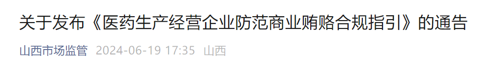 今年6月,国务院办公厅发布2024年医改重点工作任务,在“加强医药卫生领域综合监管”中提到,研究出台医药企业防范商业贿赂合规指引。