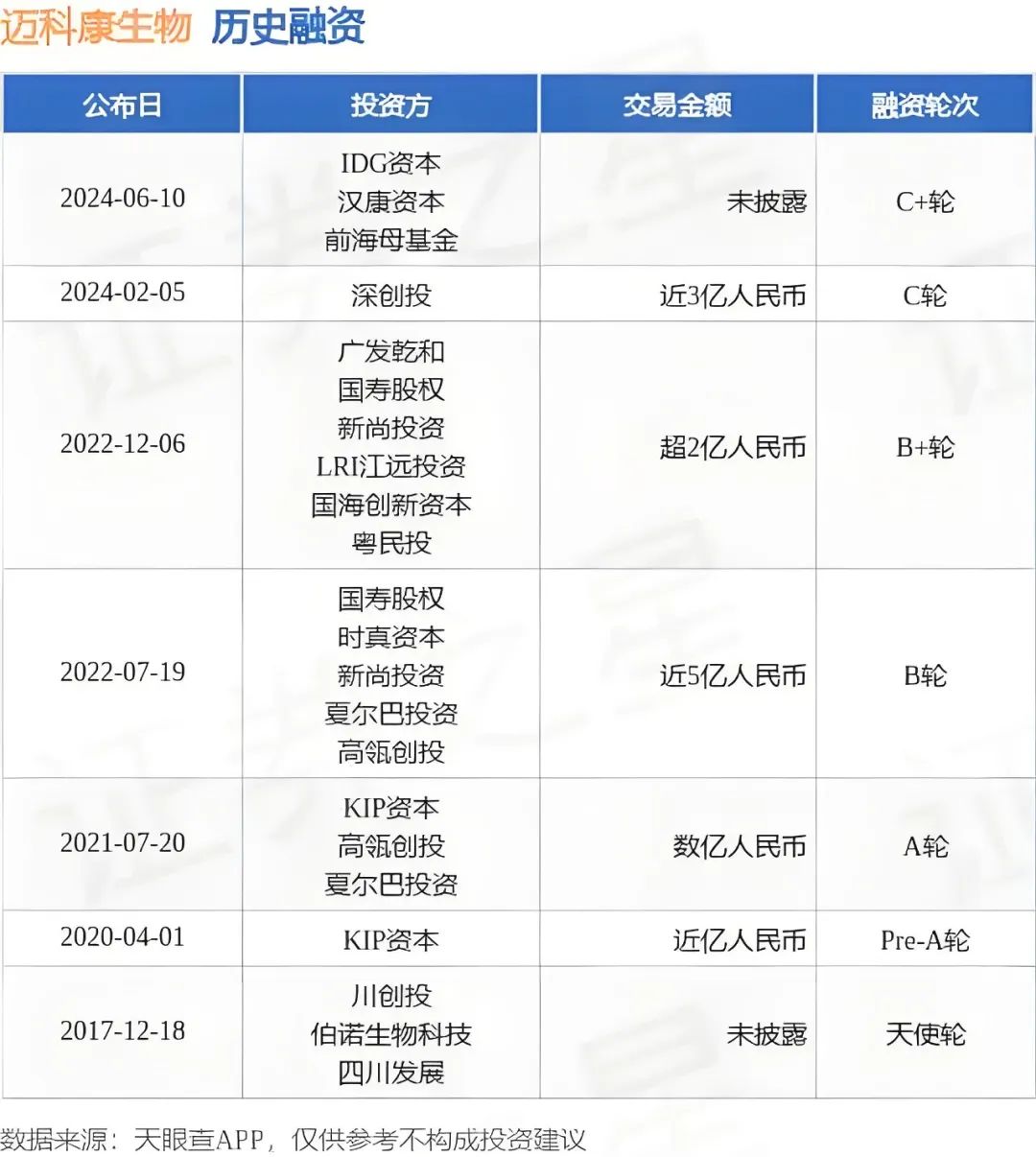 成都迈科康生物完成C+轮融资,公司累计融资已超10亿