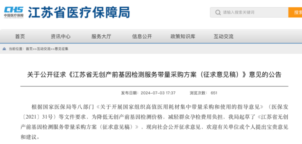 7月3日,江苏省医保局发布征求意见稿,拟对无创产前基因检测服务进行带量采购,人民日报健康客户端记者了解到,江苏是第一个对无创产前基因检测服务进行集采的省份。 “无创产前基因检测是保证优生优育的重要手段,相较于此前的产前检测方式,此方式准确率高、安全性强。”7月6日,北京妇产医院生殖调节\计划生育科主任医师陈素文告诉人民日报健康客户端记者,纳入集采后,该项服务的价格将会大幅降低,可及性的提升势必会让更多的孕妈妈选择这一相对有优势的产前筛查服务。 多省收费千元以上 纳入集采有望降七成 “无创产前基因检测是一种先进的产前检测技术,通过采集孕妇外周血(即静脉血),利用高通量测序技术,对母体外周血浆中的游离DNA片段进行测序和生物信息分析,以评估胎儿患唐氏综合征、爱德华氏综合征、帕陶氏综合征等的风险。”陈素文解释,比起此前普遍使用的唐筛技术,无创产前检测具备更多优势,但因为技术复杂且成本偏高,普及率受到一定的限制。 人民日报健康客户端记者梳理发现,2016年7月12日,原福建省卫计委发布了《关于修改部分“医疗服务价格数据库编码”的通知》,文件中明确规定福建省无创产前基因检测(NIPT)服务价格为1400元;同年12月5日,浙江省物价局官网发布了消息,将本省价格明确为1300元/次;2019年12月,江苏省调减价格至1200元/次。另外,2021年10月,NIPT被纳入北京甲类医保,价格为1475元/次。 而此次江苏省发布的征求意见显示,此次所有符合要求的申报参与企业同组竞价,报价不高于最高有效申报价345元的,按有效报价由低至高排序,排名前60%(四舍五入取整)的企业中选。其中,价格不高于275元的全部中选,且不受上述中选数量限制。以此来看,此次降幅约七成。 “纳入集采最大的优势就是价格变得亲民,也就意味着更多使用此项服务的孕妈妈能够用更低的价格用上更先进的检测手段。”陈素文表示,纳入集采是继个别省份试行无创产前基因检测政府买单后,又一个重要的尝试。 免费筛查试行 集采或为大势所趋 据记者梳理,此前河北省、湖北省武汉市、湖南省长沙市、天津市户籍孕妇均试行免费进行无创产前基因检测。 在河北石家庄市妇幼保健院,一对夫妇在等待进行无创产前基因免费检测。王艾冰 摄 2019年,武汉市卫健委在《关于印发武汉市孕妇无创产前基因免费检测及诊断项目实施方案的通知》中要求在全市全面开展无创产前基因免费检测及诊断项目。武汉市第一医院妇产科副主任、产科主任高雪梅告诉记者,“最刚开始这项检查是比较贵的,因为该无创产前基因检测服务是无创性的,不会增加孕妇流产和感染的概率,且检测准确性高达95%。但随之而来价格也比较贵,刚开始这项服务价格是在2000元以上/人,后来逐步降到1400元左右,最后政府补贴免费推行,对于孕妇来说是一个福利。” “将该服务纳入集中采购对于患者来说这是很惠民的,也减轻了患者负担。尤其是对于那些尚未享受到医保覆盖或没有政府补贴进行免费筛查服务的家庭而言,一次检查动辄一两千元的费用并不便宜。”高雪梅表示。 陈素文表示,“将无创产前基因筛查纳入集采是一个有意义的尝试,以量换价的形式能够大幅度降低该项检查的费用,提高产前筛查的可及性,从这一角度来讲,无创产前基因筛查纳入集采或为大势所趋。” |