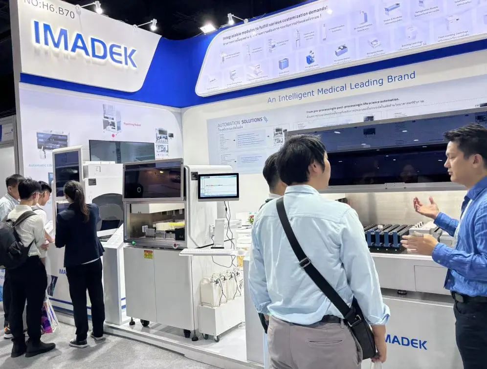 | 为期三天的2024 Medlab Asia & Asia Health展会于7月10日-12日在泰国曼谷诗丽吉王后国家会议中心举行,迈迪克作为参展商,携全自动酶联免疫分析仪、全自动核酸提取仪、全自动样本制备系统等产品亮相展会,凭借前沿的创新医疗解决方案,吸引了众多参观者的目光。展会期间,迈迪克展位人头攒动,大家或驻足拍照、或咨询洽谈,现场气氛十分活跃。现场,迈迪克团队与来自全球不同地区的客户群体就关于设备的功能结构、应用场景、操作流程等分享使用心得,展示运作流程,并细心解答关于产品维护等客户关心的技术问题,确保客户能够全方位、深入地了解我们的产品与服务。