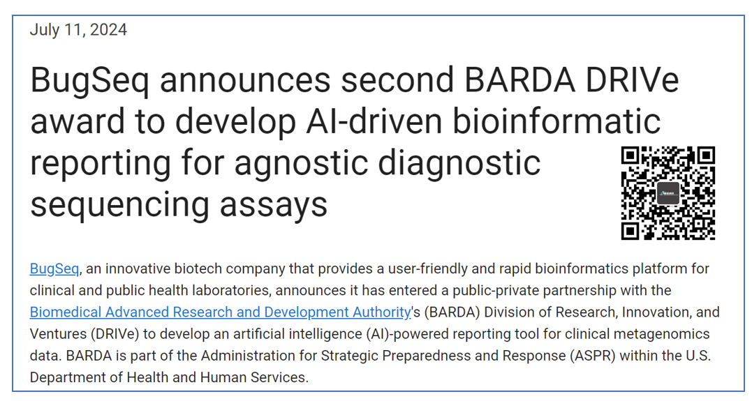 人与人的悲欢并不相通,公司也是。 比如说,我们已经卷到了3位数的mNGS领域(采样、提取、实验、报告甚至解读x)。 人家还能仅凭报告系统,连拿两个政府项目。 #01 这也能行? 2024年7月11日,加拿大(按照总部来算)BugSeq拿到了来自美国卫生部生物医学高级研究发展局(BARDA)一笔74.75万美元的合同,用于开发一种人工智能驱动的临床宏基因组数据报告工具。 是的,BugSeq就是一家加拿大的mNGS公司。 只不过他主要是做的生信分析部分,也就是“干实验”部分。 而这,也是他“司生”中第二笔从美国卫生部拿到的资助了。 早在2022年,BugSeq就拿到了BARDA一笔价值61.82万美元的项目。 该项目目的是开发一个使用mNGS方法快速检测病原微生物的系统,刚刚于2024年交付。 等等,这俩都是开发一个检测系统,也就是我们常说的自动化报告系统咯? 只不过,后面这个项目加上了个高大上的Machine learning/Artificial Intelligence... 这,在咱们这里不是“基操”么? 这,算不算是个套利机会呢? #02 我们,领先了? 我们随便拖出几个做mNGS的中国公司来看看,没点到名的欢迎留言补充(做广告大好机会)。 文中列出数据均来自公开信息,可能有点过期。 微远基因 Solar System,图形化界面,自带加速技术,能够完成从下机数据到报告的一键式全流程分析。 兼容市面上大多数测序平台,包括illumina、MGI、ONT等。 华大基因 PMseq Datician,可一次性检测细菌、真菌、病毒、寄生虫等17,500种病原体及代表性耐药和毒力基因检测,平均每个报告仅需3-5min。 现在好像迭代到了PM Display智能报告系统了,能实现对PMseq病原检测后的检测结果归集、存储、统计、分析、数据挖掘。 能够使用默认或个性化报告模板,一键智能生成检测报告,无需专业的生信分析人员。 吉因加 Gene+Box配置高性能计算硬件,可直接读取测序原始数据,准确分析解读变异的临床意义, 在离线状态下全自动化生成用户友好的解读报告。 该一体机整合一键出具临床报告、实验室信息管理、 实验室质量控制、解读知识库构建、数据管理和挖掘五大系统,帮助NGS实验室安全高效运行。 这似乎是个通用的一体机,能够加病原模块,但是公开的信息不多。 杰毅 Gentellix,该系统集样本管理、测序数据分析、解读于一身,可通过大数据分析、自动化完成病原宏基因组测序(mNGS)下机数据的数据质控、物种序列比对和耐药基因分析,精准、全面地对测到的病原体和耐药基因进行智能化 AI 解读,一键生成检测报告。 金匙医学 智能数据中心 GensLab Metis,用于宏基因组(mNGS)和靶向测序(tNGS)产品的生信分析、报告出具及全流程数据信息化管理,可实现测序检测产品的本地化报告交付和全方位数据管理。 搭载专利认证的假阳过滤算法和背景菌识别算法,全球领先的耐药表型预测算法,全流程智能可视化管理,支持自动化报告,mNGS和tNGS同批交付。 (其他待补充) #03 最后-我们领先了? 看完之后,各位是不是跟我一样有了一个大胆的想法? 我们,难道已经领先了? 我知道你很急,但是我劝你别急。 不知道各位股东有没有想过,在这个领域我们领先了么? 如果领先了,为什么不能反攻美国大陆呢? 如果没有领先,我们又欠缺在哪? 为什么没有获得大力扶持呢?呃这个问题划掉,好像没什么价值。 欢迎大家评论区留言讨论(注意用词)。