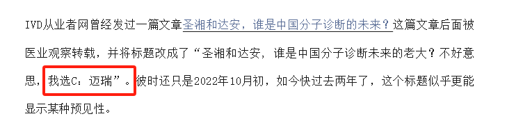 最近又看到有自媒体平台在大吹特吹迈瑞的分子诊断布局,大有一上市就能预定前三名的感觉。 现实来说,挺难的! 现在不仅一款分子注册产品都没有,即便有了,上市三年内也很难做到年营收超过1个亿。 对于迈瑞这种玩家入场分子诊断业务,最佳的时机是2020年-2023年这个时间段,2019-2020年在看到机会之后,如果迈瑞的行动足够迅速,在2021年之前迅速搭起来分子诊断业务是可能的。但直到2023年我们才看到迈瑞和国内PCR仪器的厂家合作在宠物动物领域推出了分子的方案,而进军临床分子市场的战略和口号喊了3年,但除了看到招收一些分子相关的从业者之外,并没有大的进展信息公布出来。时至今日,迈瑞已错过最佳上车时机。前几年分子诊断行业是存在结构性机会的,如果迈瑞入场,是能够有一番大作为的,但现在的分子诊断找不到很好的切入口。前几年,看到迈瑞要做分子诊断的消息时,我们做过一些推演,有三个时机是比较适合迈瑞的。第一个是22-23年各地建核酸检测基地的浪潮,彼时迈瑞如果有一款荧光PCR仪器,凭借自身强大的渠道能力和智慧实验室的方案,能够在一众分子企业中打出差异化来。第二个是呼吸道行情,如果当时迈瑞医疗能够拿出来像安图生物一样的呼吸道分子解决方案,也能让它在分子诊断领域真正立足。第三个是分子诊断自动化升级的行业节点,也就是之前铺下去的那批PCR仪器淘汰,这个大概需要再3-5年以后了,传统PCR仪器的淘汰,分子设备市场开始往一体机发展,临床开始大面积置换,但这个节点是缓慢发生的,而且被牢牢的困在试剂证多和市场份额大的企业手里,硬抢很难,毕竟现在头部的分子诊断企业,随便谁拉出来,都是三四十个注册证,迈瑞没法比。传统的分子诊断市场开始陷入“价格战”的漩涡,虽然有时候会归咎于是达安基因的调价函导至的,但大家都心知肚明,当产品同质化,竞争加剧,价格战是不可避免的。但价格战对于新入局的玩家,尤其是迈瑞医疗这种企业,非常的不友好,这也就表示,当下这种焦灼的价格战,动不动就几块钱的试剂,迈瑞也不一定看得上。当然也不是完全没有机会,国内的分子诊断缺少真正的底层技术突破,这种突破能够实现检测多重性、检测时间、检测准确度的大幅度提升。(1)做出来媲美罗氏5800系列的产品,进军高收费市场和国产玩家打,只能打价格战,但是如果瞄准罗氏的市场,收费高的检测项目,迈瑞的优势就能完全打出来,有机会。最快的方式还是买一家分子公司,然后把产品优化优化,卖到国际市场去,既能同化出来一个分子部门,也能快速在业务上看到成绩。当然从国外买一家分子企业,在国内做转化也行,总之,要比自研更快更有效。现在没有好的入局时机,不代表未来没有,现在可以提前投资一些新兴的分子诊断技术,等下一个产业节点到来,再去搏一搏。最后,说迈瑞医疗布局分子诊断,进来就能整顿分子诊断,进来就能分分钟打榜的,可以歇歇了,当我们分子诊断10亿俱乐部的四小龙是吃素的么?随便拉出来一个都是王者级别的存在。