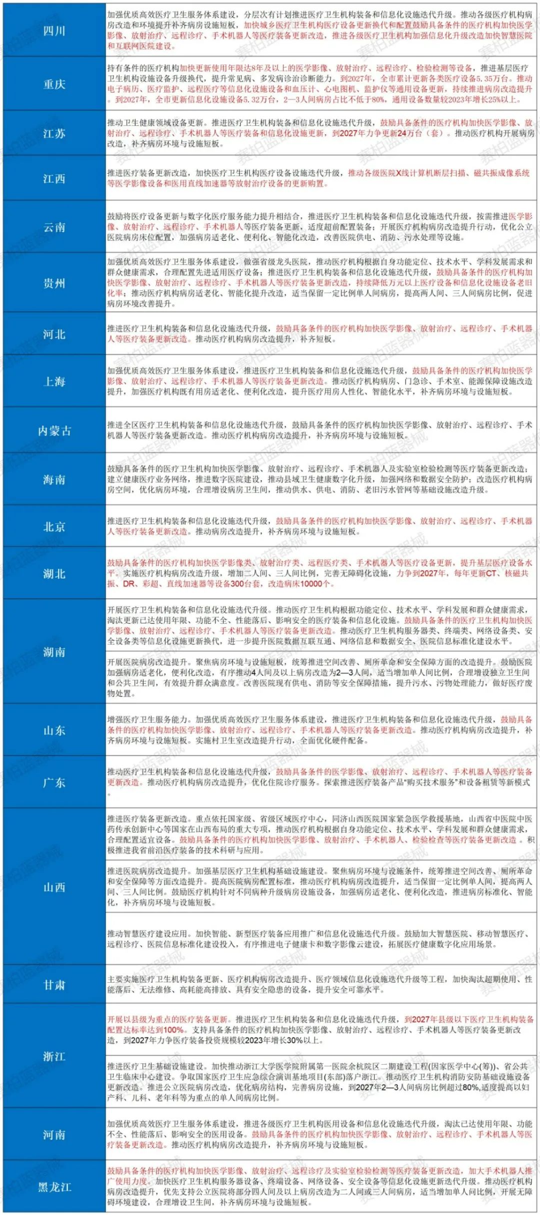 强调:统筹考虑不同领域特点,降低超长期特别国债资金申报门槛,不再设置“项目总投资不低于1亿元”要求,支持中小企业设备更新。小编的理解是,不再动不动就是几百万、上千万的医疗大放领域设备,中小医疗企业生产的器械、检验的中小型设备也有机会了。 近年来,我国医疗器械行业取得了快速的发展,同时也面临着设备更新换代的需求。为了进一步优化医疗资源配置,提高医疗服务水平,国家卫生健康委员会、国家发展和改革委员会、财政部等相关部门于3月13日就联合发布了《推动大规模设备更新和消费品以旧换新行动方案的通知》(以下简称《通知》),旨在通过以旧换新的方式,鼓励医疗机构更新老旧设备,促进医疗器械产业高质量发展。