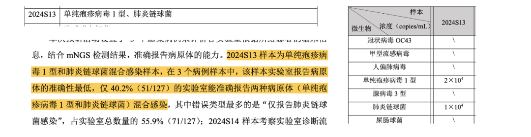 来自于2024S13这个混合感染样本,病原体为单纯疱疹病毒1型和肺炎链球菌,要求准确报告病原体。 从“检测”的角度,不难。 难点在于临床: 社区获得性中枢神经感染一般以单一感染为主,混合感染少见,HSV-1和肺链的混合感染更是少之又少。 检出后报不报,很考验报告组的临床积累及判断。 听说某大厂就是“检出了”但在结合临床的判断中选择了“不报”,喜提-5分。 当然,TA并不孤单,总共有76家在这里栽了跟头。 光是“漏报HSV-1”的,就有71家。 要知道一共只有82家没拿满分。 这些“漏网之鱼”是被哪个病原体补刀了?