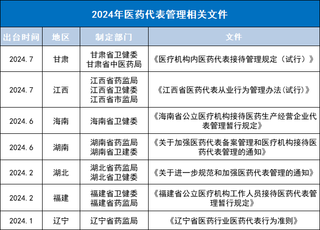 省级新规出台:医药代表院内拜访有变 近日,甘肃省卫健委官网印发了《医疗机构内医药代表接待管理规定(试行)》(下称《规定》)。这份省级文件由省卫建委、省中医药局联合制定,从多方面措施对医药代表入院拜访展开严管。