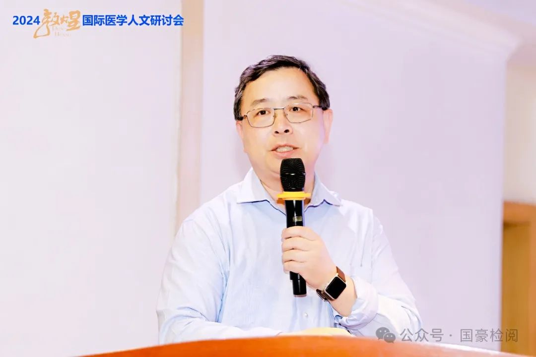 出席会议的领导和嘉宾有:敦煌市卫生健康局副局长、市红十字会会长韩艳红,历史作家、敦煌学青年学者、《敦煌大历史》作者邢耀龙;中美华人微生物感染学术交流终身成就奖获得者、美国微生物科学院院士、美国丹纳赫集团医学部首席医学官汤一苇,北美华人临床微生物学会主席、美国埃默里大学医学院教授、亚特兰大格雷迪纪念医院临床微生物、临床免疫及分子诊断实验室主任王云峰,美国传染病学会和美国微生物学会会员、美国西北大学范伯格医学院临床微生物学和公共卫生博士后培训项目主任、美国西北大学纪念医院临床微生物学实验室主任齐超,美国感染病学会会士、美国俄亥俄州阿克伦儿童医院微生物科感染病检验主任、美国东北俄亥俄医科大学病理系教授郑晓天,美国哥伦比亚大学医学院病理学及细胞生物学教授、哥伦比亚大学医学中心分子微生物及分子流行病室主任吴蘩,全美华人病理学会杰出病理学家奖获得者、美国图兰大学医学院病理和检验医学系主任殷晓鸣,美国布朗大学附属罗德岛医院病理学系微生物学科和分子微生物诊断科主任洪陶,英国皇家病理学院院士、澳洲皇家病理学院院士、香港分子诊断科学学会副会长、香港医学检验所协会荣誉顾问、香港中文大学教授凌健华,香港微生物学及感染学会副会长、香港大学教授梁皓钧;全军检验医学专业委员会副主任委员、陕西省医学会检验医学专业委员会主任委员、全军临床检验医学研究所所长、空军军医大学西京医院名誉教授、西北大学医学院检验医学系主任、西安区域医学检验中心首席科学家郝晓柯,著名临床免疫学、实验诊断学专家、国家卫生健康委“重大疾病预防及健康促进项目专家委员会”专家、首都医科大学附属北京天坛医院实验诊断中心教授康熙雄,中国医院协会临床微生物实验室专业委员会主任委员、安徽省医院协会临床微生物专业委员会主任委员、中国科学技术大学附属第一医院感染病检验诊断中心主任马筱玲,中华医学会检验医学分会委员、湖南省医学会检验医学专业委员会主任委员、湖南省分子诊断中心主任、中南大学湘雅二医院检验医学科主任胡敏,西北妇女儿童医院(陕西省妇幼保健院)主任医师齐进,甘肃省免疫学会副理事长、西北民族大学医学部免疫学教研室主任胜利,清华大学医学院博士安治臣,深圳市前海蛇口自贸区医院(深圳市南山区蛇口人民医院)科长王宁禄,上海市第一人民医院酒泉医院(酒泉市人民医院)检验科主任柴凤霞,西安**品牌策划有限公司创始人霍伟。 韩艳红代表敦煌市医疗卫生系统致欢迎词,对国内外专家学者的到来表示热烈欢迎和崇高敬意。韩艳红在欢迎辞中说,“敦者,大也;煌者,盛也”,敦煌取盛大辉煌之意,寓繁荣昌盛之愿。自汉武帝开疆拓土“列四郡、据两关”起,敦煌有2100多年历史,这里是扼守丝绸之路的咽喉锁钥,也是多民族融合发展的华戎交汇,不同文化在这里和谐共生。藏经洞出土了大量的医药类文献资料,蕴含其中的医学思想和人文精神,至今仍然散发着光芒,为医学人文研究提供了丰富的素材和深刻的启示。本次会议的顺利举办,必将汇聚各方智慧和力量,碰撞出新的火花,创造出新的价值,为加强医学和人文融合、拓宽医学人文国际视野注入强劲动能,为推进“健康中国”建设贡献力量。希望大家在敦煌多走一走、多看一看,亲身体验“春风不度”“西出阳关”的精神意蕴,与我们一道共赏大漠边塞风光,共赴千年敦煌之约。郝晓柯作为中美临床微生物学与感染病学高端论坛中方代表讲话。 郝晓柯在讲话中说,今年是新中国成立75周年,也是中美临床微生物学与感染病学高端论坛创办20周年,2016年,中美专家学者曾经走进千里河西走廊,在“河西四郡”之一的张掖举办学术活动。作为丝绸之路上的一颗璀璨明珠,敦煌是一个享誉国际社会并极具人文精神的文化圣地,中美临床微生物学与感染病学高端论坛组委会主办的2024敦煌国际医学人文研讨会紧跟第七个中国医师节脚步第一次在敦煌召开,意义重大,影响深远。汤一苇作为中美临床微生物学与感染病学高端论坛美方代表讲话。汤一苇援引习近平总书记2023年11月16日在美国友好团体联合欢迎宴会上发表演讲的话说,中美关系希望在人民,基础在民间,未来在青年,活力在地方。中美关系的故事是由人民书写的,未来是由人民创造的。作为来自美国的医学专家,我很荣幸踏上祖国的土地,走进人类文明思想高地,参加由敦煌市卫生健康局协办的2024敦煌国际医学人文研讨会。中国和美国交流,医学和人文对话,相信这将预示着一个美好的开始。邢耀龙作了《敦煌大历史——移动创造敦煌》专题报告,李文彪主持报告。流共工于幽州,放笙兜于崇山,窜三苗于三危,殛鲧于羽山,四罪而天下咸服。三苗在江汉、荆州数为乱,于是舜归而言于帝,迁三苗于三危,以变西戎。邢耀龙结合自己在瓜州县文物局、敦煌研究院的工作经历和对中国历史的深度思考,从前秦建元二年(366年)乐僔爬上三危山和玄奘西行,以及敦煌石窟中六处记载玄奘的壁画作了详细讲解,从谁是最早的敦煌人?三苗人是怎么在敦煌活下来的阐述了自己的观点:拥有移动性决定了一个人或一个民族创造历史的能力。中国历史的每一个时代之开启,似乎都是因为一个人或一群人的突然闯入而引发的。