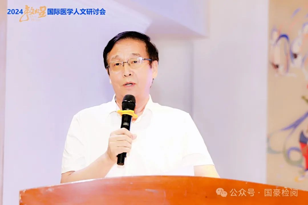 在习近平总书记视察敦煌五周年之际,以“崇尚人文精神、关爱生命健康”为主题的2024敦煌国际医学人文研讨会8月20日在人文圣地敦煌举办。来自美国、香港、北京、西安、长沙、合肥、兰州的专家学者,酒泉、敦煌的医务人员代表及社会各界相关人士近百人参加会议。独立媒体人、自由撰稿人、敦煌医学人文之路发起人、检阅品牌文化战略联合体创始人李文彪主持开幕式。