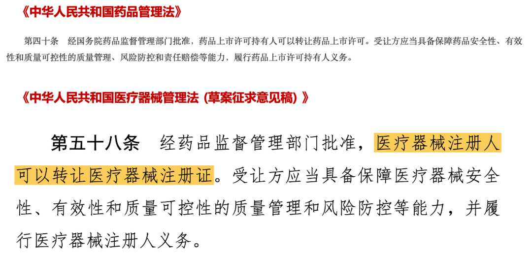 PS:本文引用资料均来自公开渠道,受限于个人认知水平,文中观点仅供参考。 01 “拧巴”的现状 以III类医疗器械为例,如果要兑现一个IVD产品的价值,一家公司大致需要走过四个阶段: 技术开发→注册拿证→生产许可→商业化 经常开公司的朋友们都知道,这是一个漫长的过程。 在现行的监管体系下,一旦拿到了注册证,这家公司就和这张证建立了“无法切割”的责任和关系。 ——因为“注册证”是无法单独交易的。 一个比较广为人知的案例是艾德在2022年转让SDC2产品权益,当时的公告中曾提及“注册证转移” 两年过去,结果大家都知道了。 现行的变更注册相关规定主要来自《医疗器械监督管理条例》的第二十一条和《医疗器械注册与备案管理办法》的第七十九条。 在实操过程中遵循的逻辑是注册证的“注册人”不能发生市场主体的改变 ——以“企业️统一社会信用代码一致”为标准。 A企业持有的注册证,想要卖给B企业,是无法独立实现的。 仅有一条相对“拧巴”的操作路径:打包收购。 B企业可以通过收购A企业,间接实现对注册证的所有权变更 ——可以“卖身”,但不能“卖证”。 这种捆绑销售事实上给交易增加了门槛,这就像我们去逛街购物一样: “你喜欢的只是这件衣服,却需要买下整个商店” 当购买变得不实惠,B公司会选择自行注册,然后利用自己的商业化能力拿下市场。 这其实是一种“双输”,A公司不得不面对“内卷”,而B公司也消耗了“时间和成本”。 大家都没有拿到“最优解”。 同时,把“证”和“企业”牢牢绑定,既是一种保护,也是一种负担。 如果以“拿到注册证”作为分水岭,对于企业能力的要求是大相径庭的:做的出好产品的不一定会卖,会卖东西的不一定能做出好产品。 当前可以“委托生产”,可以“转让经济权益”,但都是使用权层面的。 无法实现“所有权”的变更,意味着原生企业始终是“注册人”身份,围绕这个身份的一切责任及风险无法彻底剥离。 换句话说,一个强于产品开发的团队,精力会被已注册的产品无限牵扯,没有办法“轻装再上路”。 一个有活力的体系,应该让各方扬长避短。 而第五十八条,打开了这个口子。 02 “流动”的活力 这次的第五十八条让医疗器械“追上了”药品。 ——几乎就是《中华人民共和国药品管理法》第四十条的翻版 当“注册证”成为可单独交易的资产,一切都顺畅了。 ——你擅长研发,他擅长生产,我擅长销售,我们都有光明的未来。