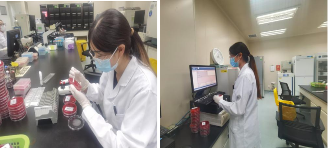 在微生物室进修的第一天,微生物组的组长李方强老师就给我介绍了进实验室的生物安全要求和微生物的日常工作流程。微生物室主要从事病原菌的培养与鉴定、药物敏感性分析、感染性标志物检测、分子生物学检测、医院感染相关监测、耐药网数据统计及生物安全防护管理等工作。现拥有VITEK 2-Compact、VITEK 2-XL全自动细菌鉴定药敏系统、超过1000瓶血和脑脊液培养能力的全自动微生物培养系统以及MALDI-TOF MS 质谱检测系统。常规开展的项目涉及脑脊液、血液、痰液、尿液等各类临床标本的细菌学检测及染色、结核感染T淋巴细胞检测(T-SPOT)、艰难梭菌毒素及抗原检测、真菌(1,3)-β-D-葡聚糖检测(G试验)、曲霉菌半乳甘露聚糖检测(GM试验)、新型隐球菌荚膜多糖检测(GXM试验)等。