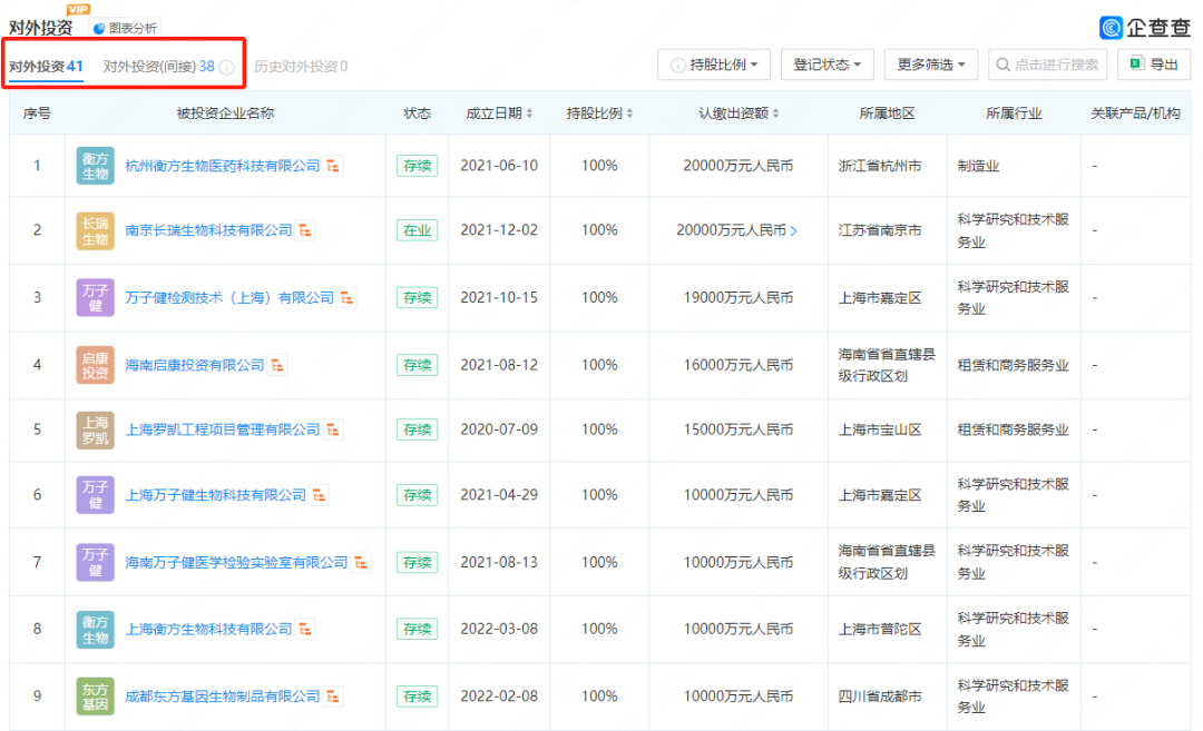 从投资力度上来看,东方生物的策略还是非常激进的,对外投资41项,间接对外投资也有38项。 2023年,东方生物收并购多达12起。 2023年1月1日,投资成立哈尔滨长瑞生物科技有限公司(后改为哈尔滨东方基因生物制品有限公司) 2023年1月1日,投资成立哈尔滨万子健生物科技有限公司。 2023年1月10日,投资成立上海衡方生物医疗科技集团有限公司。 2023年1月18日,收购上海罗凯工程项目管理有限公司 2023年4月19日,收购北京博朗生科技有限公司94%的股权 2023年5月6日,追加万子健检测技术(北京)有限公司持股比例至100% 2023年5月25日,将北京汉同生物科技有限公司持股比例从51%提升至100% 2023年10月8日,投资嘉兴启悟股权投资合伙企业(有限合伙)89%股权 2023年11月15日,将青岛汉德森生物科技有限公司的股权从70%提升至86% 2023年11月26日,将杭州深度生物科技有限公司的股权从61%提升90% 2023年12月25日,并购北京华信农威生物科技有限公司部分股权 2023年12月29日,拟以自有资金6919.3216万元收购杭州莱和51.2542%的股份。 从2024年的半年报来看,主要控股参股的四家公司中,英国爱可目前仍处于亏损状态,净利润亏损2192万。 而美国衡健则是东方生物在美洲市场的桥头堡,美国时间8月28日,其全资子公司美国衡健生物科技有限公司(Healgen Scientific LLC,以下简称“衡健生物”)休斯敦工厂举行剪彩仪式。该工厂日产能可达上千万人份,从本月起,将开始生产新冠、甲乙流三联检试剂等体外诊断产品。 据介绍,衡健生物在美国运营了17年,作为全球医疗保健行业的领军企业,衡健生物拥有300多条自动化生产线,日产能可达千万人份,已有18条自动化生产线在美国本土正式投产。在纽约、新泽西和得克萨斯州,衡健生物已建立了大型生产基地,并在这三个大型仓库设施上投资超过2000万美元。 美国康赋生物则是东方生物近期刚刚收购的一家渠道公司。 东方基因的投资一直很激进,从2022年的财报显示,2022年完成对英国本OMEGA收购,取得唯一获得WHO预认证的艾滋病半定量检测产品CD4,通过收购控股北京新兴四寰,新增了酶联免疫技术及相关产品,扩充了胶体金产品线,如诺如病毒、EB 病毒、汉坦病毒等检测试剂。 另外,开启第三方检验室建设,布局质谱中心、LDT临床实验室、CRO业务等平台,初步实现“产品提供商+第三方检测服务商”。分子诊断平台完善了核酸PCR、基因测序、FISH 病理诊断等技术路线, 通过收购北京首医、绍兴金箓取得FISH荧光原位杂交配套设备、试剂和引物、探针等原料。 2022年6月,针对对浙江正熙生物进行新一轮数千万元融资,由东方基因投资,取势资本、旭医资本担任财务顾问,布局绕流式荧光检测、免疫组化检测、多组学检测持续布局临床产品及上游试剂原料。 |