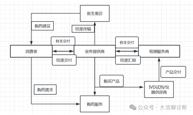 1.前言: 而在9个月的开展时间中,MTHE开展的7个城市共计送检超50万例呼吸道样本。而在今年7月MTHE的阴道微生态项目,JDHE(京东)70余项检测项目也陆续加入到居家送检业务中。 首先表明大浩的观念依旧没变。居家送检业务还是处于四方皆赢的状态。以下图为例。 终端消费者用户:是整个居家送检业务的起点。其按照开单类型可分为用户自发型和医生指导型。 在某类疾病爆发期间,以及对于灵活就业、不方便就医的消费者看来居家送检业务确实解决了上述人群的真实、迫切的需要。 消费者通过相对低的价格获得了准确,快速,可及的检测,通过线上看诊和买药服务完成,诊医药的闭环体验,最重要是消费者从采样到诊断再到最终的药物送达可做到全程足不出户。 业务提供商:通过提供给消费者用户对接端口(APP/小程序)与服务人员(配送及采样人员),与IVD的产品供应商达成合作,并将检测服务外送至有资质的检测服务商进行检测,后交付结果。 最后提供给消费者在线看诊与购药服务,以完成诊医药的医疗闭环。其拓展,创新业务模式。是整个居家送检业务的中心。 检测服务商:从业务服务商手中收取样本,从IVD供应商获得试剂/仪器,并提供给销售者实际的检测服务,最后将结果汇报。从而获得稳定的的检测量,拓展业务。属于整个业务的下游。 IVD供应商:与业务提供商达成合作协议,定向往检测服务商提供产品与技术/售后服务。通过与检测服务商和业务提供商合作开展新的业务路径。属于整个业务的下游。 2.1.1.线上下单、线下采样: JDHE和MTHE一开始的呼吸道病原体检测项目都是通过线上下单、线下采样的方式,通过自有端口和运力完成下单到送检的流程。 再通过与具备相关检测资质的第三方医检所合作,由其提供检测服务和结果汇报。 2.1.2.检测时效性、价格: 呼吸道的检测都承诺在3小时出具结果,同时价格为首单69.9元,第二单及以后99.9元的价格。 2.1.3.开展背景及范围: 业务开展的背景基于2023年呼吸道疾病流行且出现多个病原体叠加感染。这导至大量人群尤其是儿童出现呼吸道疾病,致使医院大量收治患者,再加之呼吸道感染用药是需要先检测明确病原体后方可用药。 因此满足快速、准确、可及、无需排队等待等需求呼吸道居家送检顺势而出。 根据JDHE的报告目前其呼吸道检测项目北京、上海、广州、深圳、杭州、武汉、重庆、成都、天津、苏州,10个城市开展。 MTHE在流感大会上介绍其项目覆盖北京、广州、上海、深圳、南京、杭州、成都7个城市。 其一:这些地区有庞大的用户人群以及对呼吸道病原体检测的消费意愿和切实需要。 其二:这些地区的ICL资源丰富,可以满足送检要求和及时结果汇报等业务需求。 其三:这些地区医疗资源相对集中,导至基层诊疗能力相对真空。致使基层对于患者就诊的分流能力较差。 如果说刚开始MTHE(美团)与JDHE做呼吸道病原体检测业务,都是摸着石头过河的话,业务开展一段时间后,其拥有固定且庞大的用户群体、成熟的商业模式、高效稳定的检测流程、可观的检测数量。当其拥有上述的一切条件时也许就该扩展新的业务。 2.2.1.后续开展项目: 这两家后续的开展业务就大相径庭。 MTHE后续开展的是价格39.9的阴道微生态检测,其需要样本自采。第一批已覆盖北京、广州、深圳、杭州、成都、南京6个城市。阴道微生态居家送检的简析和建议。 JDHE则是开展包含糖尿病评估、高尿酸血症、痛风、高血脂症、甲状腺功能异常等项目在内的70种血液检测指标,而JDHE则是使用令人放心和合规的护士上门采样方式。覆盖地区为北京城区及部分近郊区。 但我们不能忽视检测项目的性质带来的采样方式的不同。让患者自采有创的血液样本这并不现实,所以护士上门采样有其必要性。而阴道微生态的宫颈拭子,女性也可以自行采样所以护士上门采样也并非必要。 2.2.2.开单的模式: 二者在后续开展项目的开单方式也完全不同。JDHE是线上医生指导开单,大浩称之为医生指导型开单,MTHE则依然沿用用户线上自行下单,线下检测的模式,大浩称之为用户自发型开单。 2.2.3产业链背景: 虽然在最初的流程图中可以大致看出业务的流向及关系,但是最重要的检测后的药品流通患者二者也截然不同。 MTHE是依靠数量庞大的合作药店,通过使用自有运力将药品从药店送达用户手中。 JDHT则是拥有药品平台,看诊后下单,药品可从平台直接发货到用户手中,这样药品的流通环节更少、对业务可控性更高、故猜测利润也高一些。 因此JDHE开展居家送检业务不仅可以拓展业务,也可以为自有的药品平台引流,以获得更多的潜在机会。 2.2.4.服务人群及逻辑: 其实从开单模式到后续开展项目也可以看到,虽然JDHE与MTHE都在做居家送检的业务,但是大浩认为其服务人群和底层逻辑则不太相同。 MTHE的阴道微生态检测项目,其主要服务人群是城市中工作的成年女性,此类人群可能会存在阴道微生态失衡的情况,因此检测后通过平台提供的在线问诊、跟进购药业务即可完成诊医疗的闭环。 大浩评价这是一个好项目但也任重而道远。评价其为好项目是因为我国女性在2020年第五次人口统计中为6.8亿,意味着我国成年女性体量非常高,而且STIs和阴道炎类的疾病特点就是复发率高。 基于上述现状,这既保证充足的检测体量,而又潜在提升开单的重复性和顾客粘性。 任重道