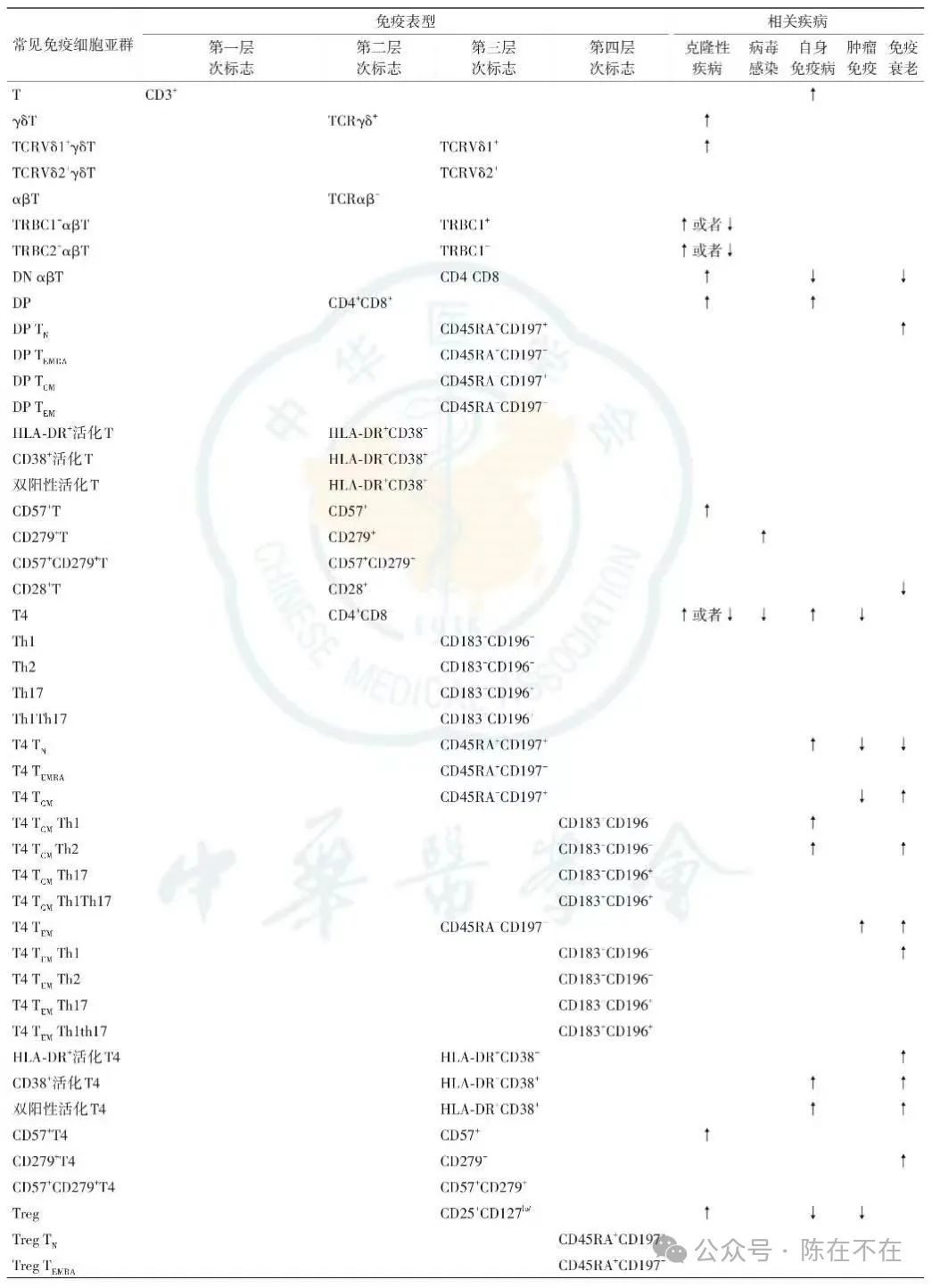 1 — 应用拓宽 Multiple indicators 流式细胞术有很多优点,作者曾总结为: 检测速度快、分析参数多、获取信息量大、灵敏度高、准确性好、方法灵活。 见笔者参与编著的《流式细胞术基本原理与实用技术》 如果说,流式细胞学最大的特点,那还是—— 分析参数多,准确地说是同时分析参数多。 先看细胞流式,尚红院士为通信作者的《流式细胞术的临床应用专家共识》给出常见淋巴细胞精细分型方案: 王卉,崔巍,刘贵建老师为通信作者的《基于多参数流式细胞术精细化分析外周血免疫细胞亚群的中国专家共识》给出精细化免疫细胞亚群及相关疾病中的意义: 再举个例子,看看小伙伴们整理的OMIP十色以下的方案 尽管细节上有所差异,但最大的问题还是,获证的商品试剂盒基本上是围绕CD45,CD3,CD4,CD8,CD19,CD16和/或CD56这七抗体所展开。 所谓六色淋巴细胞分群有7家公司注册; 四色淋巴细胞分群有6家公司注册。 除了泛肽公司的CD4/CD45RA/CD62L/CD8+线粒体染料试剂盒。 更多有价值的精细分群实质上仍未实现标准化,智能化,商业化。 再看微球流式,透景生命率先将肿标,心标,TORCH,肝纤维等指标实现同管联检。 赛基公司发端,瑞斯凯尔跟进,旷博,美瑞特,胡曼智造,中翰盛泰,唯公等13家公司相继获得细胞因子多联检试剂盒二类证。 胡曼智造,亚辉龙等聚焦自免市场。 赛基,谱迪率先开发阿尔茨海默病相关蛋白试剂盒。 透景,达安等分别从HPV基因分型,地中海贫血基因等分子试剂入手。 我们相信,只有坚持同管多参数分析这一核心优势,将临床意义讲深讲透,临床流式细胞术才可能在IVD诸领域中绽放——结果——壮大。 同时,注意几个问题: