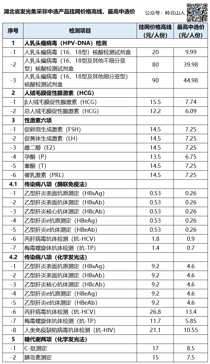 作者:岭北山人 本文共1500字,预计阅读时间3分钟 9月29日,湖北省医保局发布消息,湖北省药械集中采购部门联席会议办公室关于执行2023年体外诊断试剂省际联盟集中带量采购、肾功和心肌酶生化类检测试剂省际联盟集中带量采购中选结果的通知,明确安徽发光集采和肾功心肌酶集采10月31日开始执行。 在其他省份执行的文件中,明确中选产品的执行时间及挂网、三方协议签订的时间要求。但通过湖北省医保局的两份文件,我们可以看出,对于非中选产品,多次提出。 按其性能与价格相匹配的原则,以不高于设定的价格高线和全国省级平台最低挂网限价两者的低价,在省采购平台医用耗材集中带量采购专区挂网。 安徽发光集采产品设定的限价如下: 文件还特别要求,对非中选产品使用量异常增加的,医疗机构应作出情况说明。 也就是说,即使是未中选产品或流标产品,也可在湖北平台进行挂网,医疗机构也可以进行采购,只是医保基金的支付比例不同。 通过查询发现,湖北在药品集采中,也用过类似的规则,按当时的集采产品,医保支付比例在挂网价的基础上,从2%-100%不等。暂时没有查询到关于体外诊断试剂及耗材的相关文件。 无独有偶,对于集采非中选产品的采购和医保支付,广西省在肾功和发光集采执行文件中,也做出明确要求: 非中选产品销售价格低于同类中选产品最高中选价格的,以销售价格作为医保支付标准; 销售价格高于同类中选产品最高中选价格2倍(含2倍)以内的,以同类中选产品最高中选价格作为医保支付标准; 销售价格高于同类中选产品最高中选价格2倍以上的,以同类中选产品最高中选价格的110%作为医保支付标准,在两年内渐进调整医保支付标准至不超过同类中选产品的最高中选价格;超出医保支付标准的费用由患者自付。 但广西对于非中选产品的挂网和采购要求,没有进一步明确。 长期以来,对于集采流标产品和注册证增补的产品,一直没有明确的文件规定。湖北的此项操作,对于集采未中选的产品,或者由于注册证晚拿而导至没有参与集采的企业来讲,也不失为一次机会。 截至目前,湖北医保局未对此次挂网情况进行说明,也暂时未在平台开放增补挂网模块。 后续情况,我们持续跟进。 |