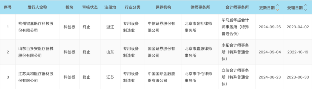 二级市场资本通道关闭,企业大额募资、机构最高收益的通道基本被斩断 2024年9月,上交所显示有5家医疗器械公司中止了财报更新,约有3家医疗器械公司终止IPO。不完全统计,截至2024年9月底,上交所共有约11家器械企业、近30家医健企业终止了IPO。