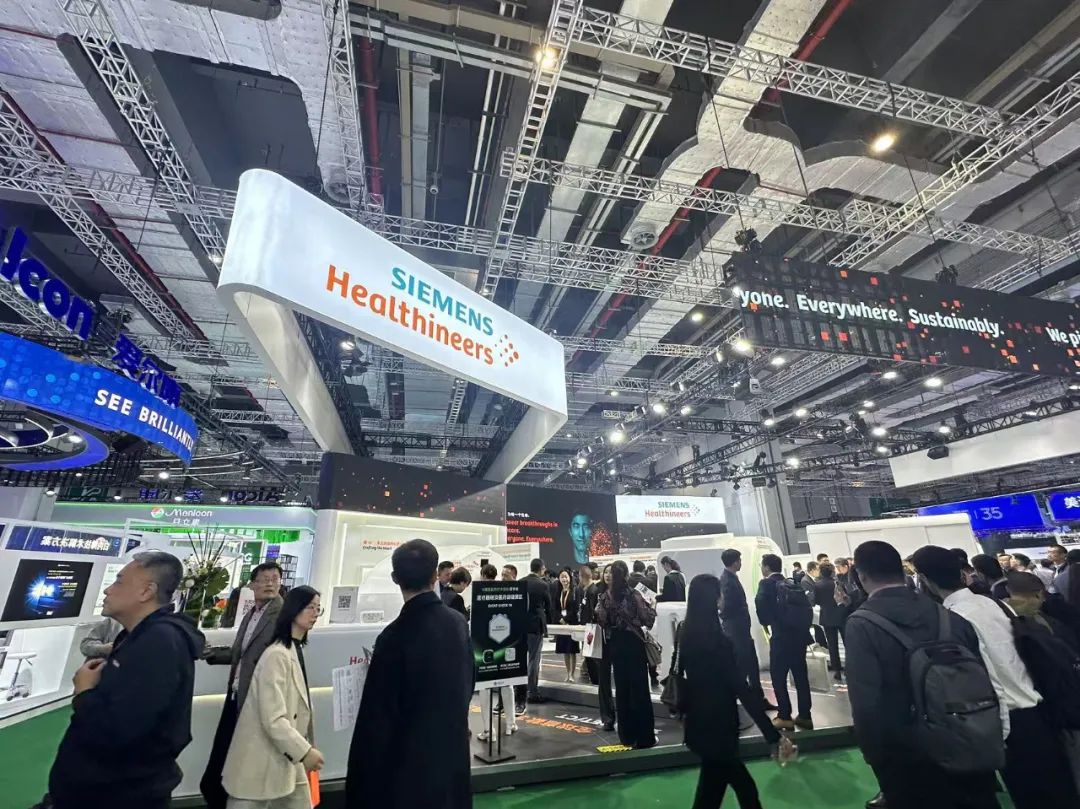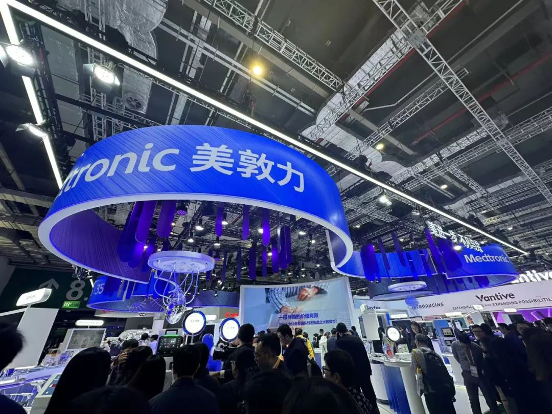图| 赛柏蓝器械 来源 | 赛柏蓝器械(发自上海) 01 11月5日,第七届中国国际进口博览会在上海开幕。 进博会一直都是全球医疗器械新品首发地,今年的“中国首秀”“全球首秀”仍然是众多展台的关键词。 医疗器械及医药保健展区位于7.1、7.2及8.1号馆,展览面积7万平方米,设置医疗器械、药品、健康营养三大板块及健康养老专区。 展区吸引世界各地260余家企业参展,包括全球十大医疗器械企业、十一家世界500强制药企业。 医疗器械板块集中布局7.1馆,全球十大医疗器械企业集体亮相参展(美敦力、强生、雅培、西门子医疗、史赛克、GE医疗、碧迪、罗氏诊断、飞利浦、波士顿科学),聚焦生命健康创新智能产品及数字化精准解决方案。今年医疗器械板块围绕新质生产力、医疗设备更新、银发经济等热点话题,汇聚一批全球首发、亚洲首展、中国首秀的高精尖展品。 今年“新质生产力”成为创新药械研发、生物医药技术的新重点。一批填补国内市场空白的中国首秀产品即将进入市场,改变相应市场格局。 从今年展品来看,应用场景多元化,下沉基层,全链条扎根本土市场,产品个性化、定制化,聚焦老年人生活痛点,AI赋能、诊疗一体化等成为跨国器械巨头产品更新的高频词汇。 如: 美敦力便携式人工心肺(ECMO),亚洲首展。它打破原有医院内床边使用的限制,可适用于院内、院外多场景,能应用于各种救灾应急前线,让救治工作快速开展,最大程度减少血栓形成风险,保障急症、危重症患者长效生命支持,具备全面监测功能和纯图形界面设计,不受任何语言限制。 GE医疗针对阿尔茨海默病的全链条生态解决方案,全球首发。可实现提早10-15年发现病变可能,并整合治疗领域新药,推动阿尔茨海默病精准诊疗。 波士顿科学旗下减重产品Apollo ESG。这是胃镜下袖状胃成形术(ESG)品类首个且唯一获FDA批准的前沿技术。 02 |