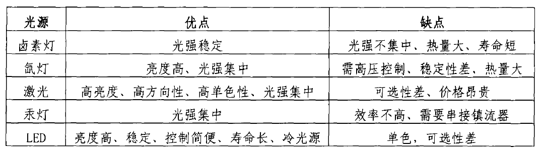 由于荧光体的荧光强度与激发光的强度成正比,因此,作为理想的激发光源应具备:足够的强度,在所需光谱范围内有连续的光谱,其强度与波长无关,即光源的输出应是连续平滑等强度的辐射,光强稳定。用于提供激发光源。通常采用高亮度LED或卤钨灯、氙灯、激光等光源,能够提供稳定的荧光激发光。